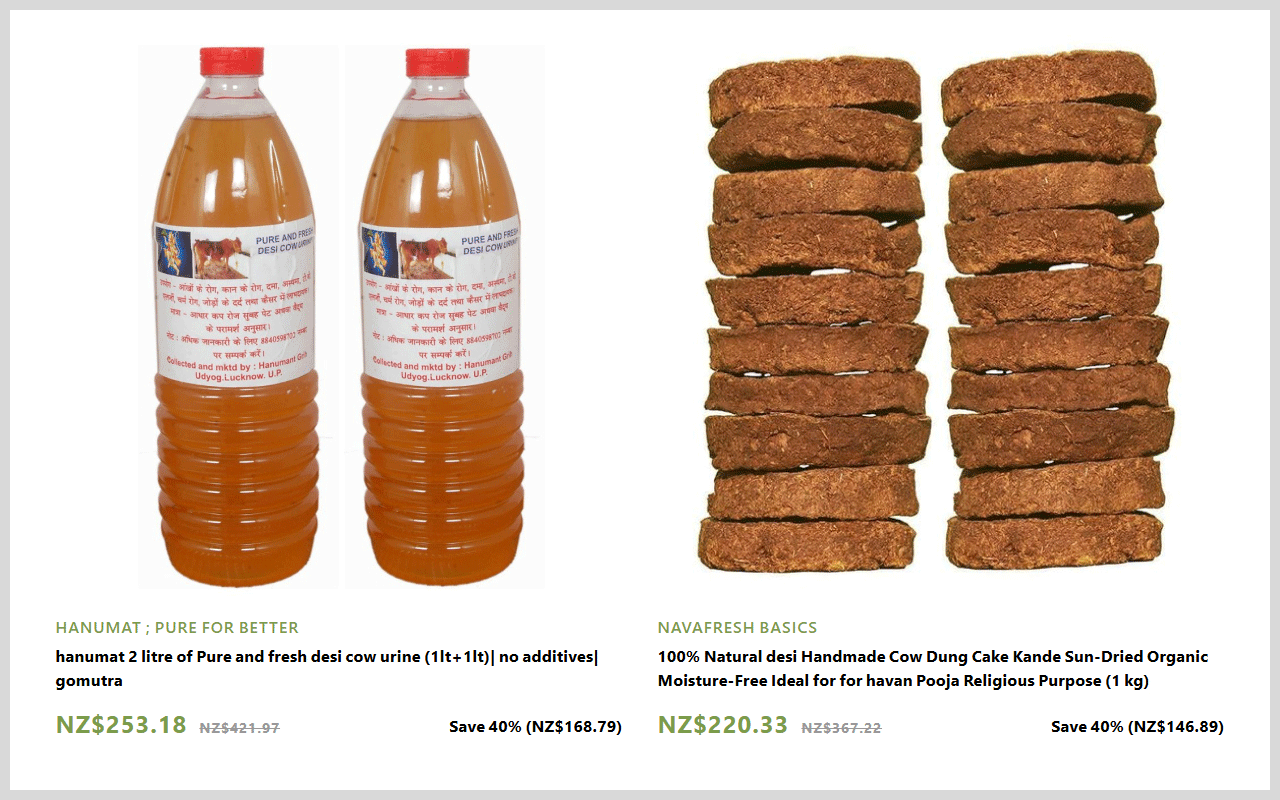 అసలు విషయంలోకి వెళ్తే.. ఇప్పుడు న్యూజిలాండ్ ఆక్లాండ్ లో "నోవా ఫ్రెష్ " లో ఆవు మూత్రం, ఆవు పేడ స్టోర్లో అమ్ముతున్నారు. ఈ స్టోర్ లో వాటి ధర చూసి ప్రజలు సైతం ఆశ్చర్యపోతున్నారు. నోవా ఫ్రెష్ స్టోర్ లో ఆవు మూత్రం రెండు లీటర్లు 253 డాలర్లు కాగా(మన ఇండియన్ కరెన్సీ ప్రకారం 13 వేల రూపాయలు అన్నమాట), ఆవు పేడ కేజీ 250 డాలర్లు (అంటే మన ఇండియన్ కరెన్సీ ప్రకారం 11 వేల రూపాయలు). అలాగే ఆవు పేడతో తయారు చేసినటువంటి బేబీ పౌడర్ ధర 214 నుంచి 250 డాలర్ల వరకు ఉన్నట్లుగా తెలియజేశారు. ముఖ్యంగా ఆవు పేడ, మూత్రంలో యాంటీ బయోటిక్స్ ఉంటాయని ఆరోగ్యానికి కూడా చాలా ఉపయోగకరం.