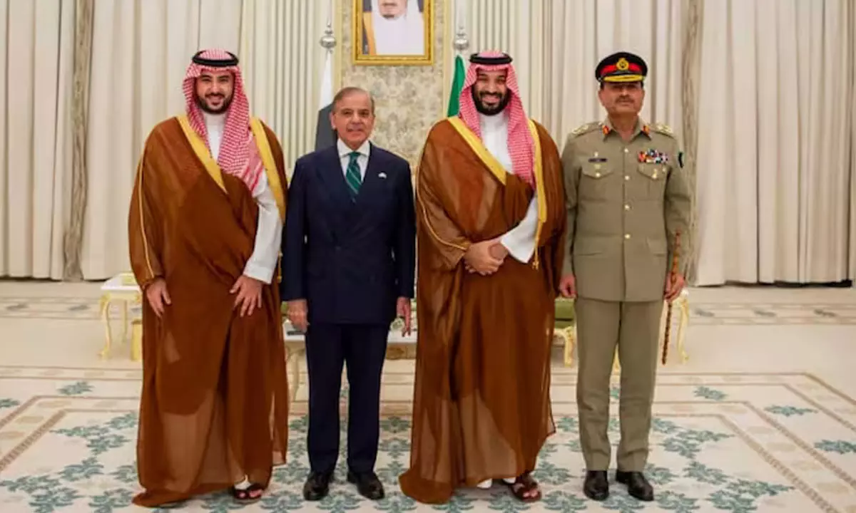 By: A.N.Kumar | 11 March 2026 5:27 PM ISTమధ్యప్రాచ్య రాజకీయ ముఖచిత్రం వేగంగా మారుతోంది. ఇరాన్–సౌదీ అరేబియా మధ్య నెలకొన్న ఉద్రిక్తతలు రోజురోజుకూ తారాస్థాయికి చేరుకుంటున్న నేపథ్యంలో పాకిస్థాన్ అత్యంత కీలకమైన ప్రకటన చేసింది. మిత్రదేశమైన సౌదీ అరేబియాకు ఆపద సమయంలో పూర్తి స్థాయి సైనిక సహాయం అందించేందుకు తాము సిద్ధంగా ఉన్నామని పాక్ ప్రభుత్వం స్పష్టం చేసింది. ఈ మేరకు పాకిస్థాన్ ప్రధానమంత్రి షెహబాజ్ షరీఫ్ కార్యాలయ ప్రతినిధి ముషారఫ్ జైదీ ఒక అధికారిక ప్రకటన విడుదల చేశారు.