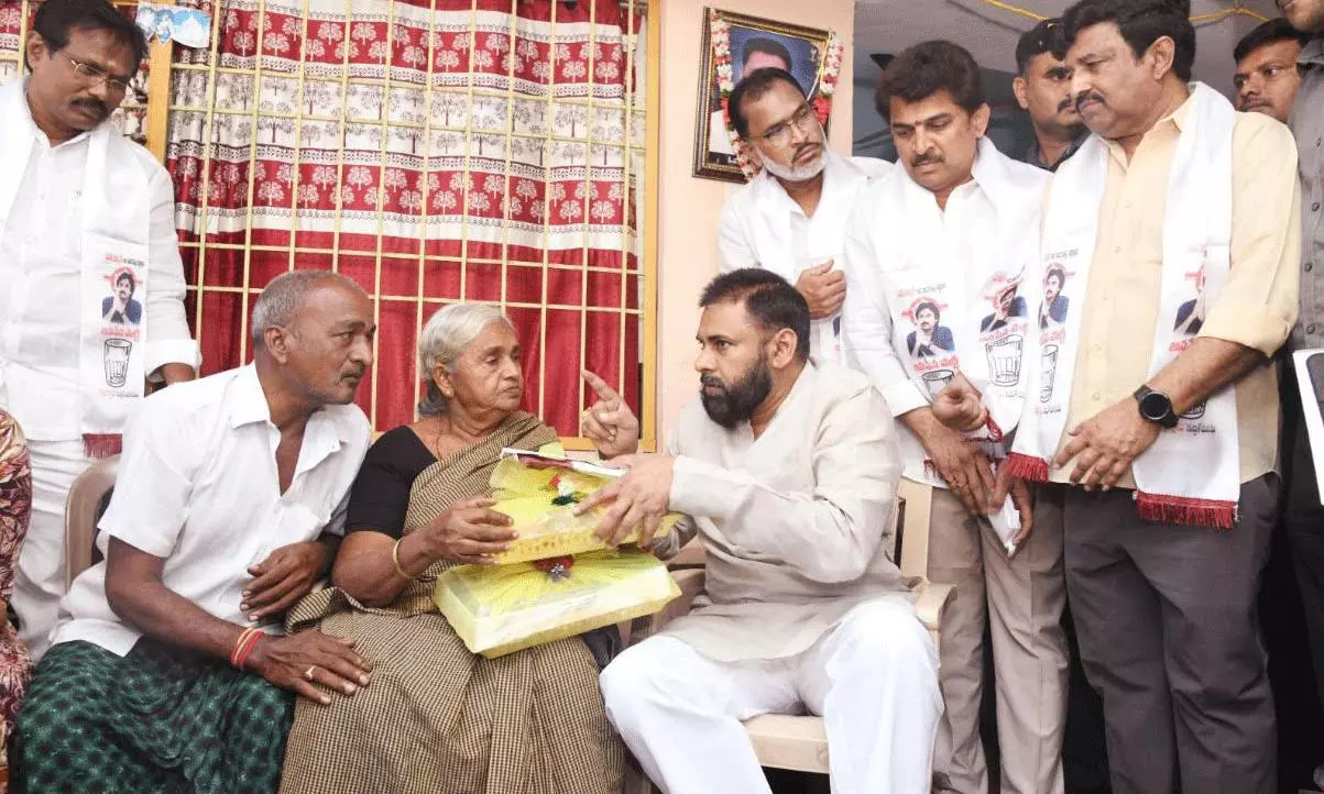 ఈ సందర్భంగా కాసేపు ఆ కుటుంబ సభ్యులతో ముచ్చటించారు. అనంతరం వృద్ధురాలు నాగేశ్వరమ్మ మాట్లాడారు. ఈ సందర్భంగా... ఇచ్చిన మాట ప్రకారం పవన్ కల్యాణ్ తమ ఇంటికి రావడం సంతోషంగా ఉందని అన్నారు. ఇంటికి పెద్ద కుమారుడిలా యోగక్షేమాలు అడిగి తెలుసుకున్నారని ఆమె ఆనందం వ్యక్తం చేశారు. కుటుంబానికి అండగా ఉంటానని భరోసా ఇచ్చారని.. ఆరోగ్యాన్ని జాగ్రత్తగా చూసుకోవాలని సూచించారని ఆమె తెలిపారు.