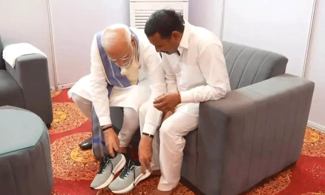 మిమ్మల్ని మీరు ఎందుకింతలా ఇబ్బంది పెట్టుకున్నారన్న ప్రశ్నను సంధించిన మోడీ.. ఇకపై ఎప్పుడూ అలా చేయొద్దని హామీ తీసుకున్నారు. ఈ సందర్భంగా మోడీ స్పందిస్తూ.. ఇలాంటి వ్యక్తుల అప్యాయత.. ప్రేమను అంగీకరిస్తానని.. అలాంటి శపధాలు చేయొద్దన్నారు. ‘ఇలా చేసే ప్రతి ఒక్కరిని అభ్యర్థిస్తున్నా. మీ ప్రేమను గౌరవిస్తా. దయచేసి సామాజిక క్రషి.. దేశ నిర్మాణానికి సంబంధించిన అంశాలపై ఫోకస్ చేయండి’ అంటూ ఎక్స్ ఖాతాలో పోస్టు చేశారు. చెప్పుల్లేకుండా తన వద్దకు వచ్చిన కశ్యప్ కు స్వాగతం పలికిన మోడీ.. ఒక సోఫాలో కూర్చున్న తర్వాత.. అతడ్ని కొన్ని ప్రశ్నలు అడగటం.. అనంతరం బూడిద రంగులో ఉన్న స్పోర్ట్స్ షూ అతడికి అందజేయటమేకాదు.. స్వయంగా తొడగటం కనిపిస్తుంది. అయితే.. భవిష్యత్తులో అలా చేయొద్దని అభిమాని నుంచి మాట తీసుకోవటంతో వీడియో ముగిసింది. ఇలాంటివి ప్రధాని నరేంద్ర మోడీకి మాత్రమే సాధ్యమవుతాయని చెప్పక తప్పదు.
