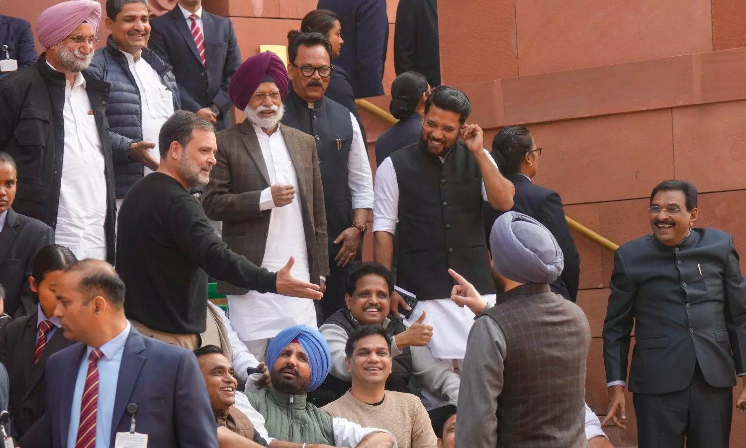 ఈ వ్యాఖ్యలపైనే కాంగ్రెస్ నాయకులు నిరసన వ్యక్తం చేస్తున్నారు. ప్రస్తుతం జరుగుతున్న బడ్జెట్ సమావే శాల్లో ఈ పుస్తకం(ప్రచురితం కాలేదని బీజేపీ నాయకులు అంటున్నారు. ప్రచురించారని పుస్తకాలతో సహా రాహుల్గాంధీ వచ్చారు) గురించిన చర్చే కీలకంగామారింది. ఇరు పక్షాల మధ్య మాటల తూటాలు కూడా పేలుతున్నాయి. ఈ క్రమంలోనే పార్లమెంటు ముందు కాంగ్రెస్ నేతలు.. ధర్నాకు దిగారు. ఇదిలావుంటే.. ఈ సమయంలో కేంద్ర మంత్రి రవనీత్ సింగ్ బిట్టు(గతంలో కాంగ్రెస్లో ఉండేవారు. ప్రస్తుతం బీజేపీనేత) అటుగా వస్తూ.. పార్లమెంటులోకి వెళ్తున్నారు.