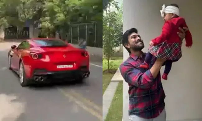 By: Tupaki Desk | 7 Aug 2025 6:20 PM ISTమెగా పవర్ స్టార్ రామ్ చరణ్ తాజాగా తన కూతురితో కలిసి జూబ్లీహిల్స్ వీధుల్లో కార్ లో తిరిగిన వీడియో సోషల్ మీడియాని షేక్ చేస్తోంది. ప్రస్తుతం ఈ వీడియో సోషల్ మీడియాలో వైరల్ గా మారడంతో మరోసారి క్లీంకారా పేరు టాక్ ఆఫ్ ది సోషల్ మీడియా గా మారిపోయింది. విషయంలోకి వెళ్తే.. రామ్ చరణ్ తాజాగా జూబ్లీహిల్స్ లో తన కూతురుతో కలిసి ఫెరారీ కార్ లో తిరిగిన వీడియో నెట్టింట వైరల్ గా మారుతోంది. ఇక రామ్ చరణ్ క్లీంకారా ఇద్దరు కలిసి తిరిగిన ఆ ఫెరారీ కార్ ధర దాదాపు రూ.3.5 కోట్లు. అలా కూతురితో కలిసి జూబ్లీహిల్స్ వీధుల్లో రామ్ చరణ్ రెడ్ కలర్ ఫెరారీ కార్ లో తిరిగిన వీడియో సామాజిక మాధ్యమాల్లో వైరల్ అవుతోంది.