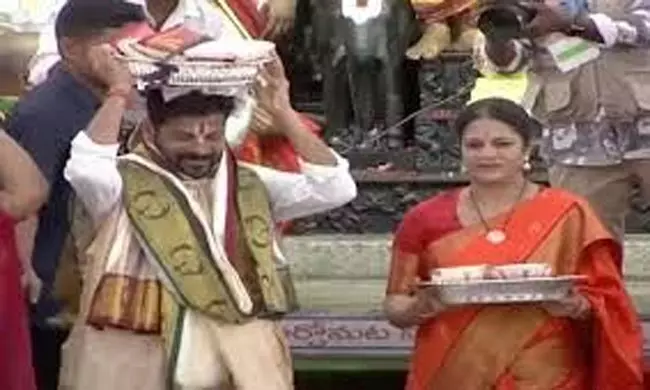 తెలంగాణలోని ప్రముఖ పుణ్యక్షేత్రమైన భద్రాచలం శ్రీ సీతారామచంద్రస్వామి వారి ఆలయంలో రామ నవమి సందర్భంగా ముఖ్యమంత్రి తరపున పట్టు వస్త్రాలు, తలంబ్రాలు సమర్పించడం ఒక ఆనవాయితీ. అయితే 2015లో అప్పటి ముఖ్యమంత్రి కేసీఆర్ ఈ సంప్రదాయాన్ని ప్రారంభించారు. ఆ ఏడాది ఆయన స్వయంగా భద్రాచలం వెళ్లి రాములోరికి పట్టు వస్త్రాలు, తలంబ్రాలు సమర్పించారు. కానీ ఆ తర్వాత ఈ సంప్రదాయం నిలిచిపోయింది.