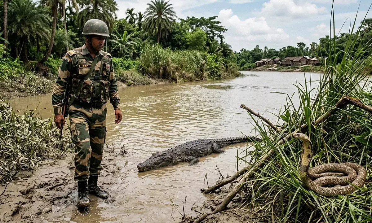 By: Tupaki Political Desk | 6 April 2026 3:11 PM ISTఒకవైపు జాతీయ భద్రత, మరోవైపు ఆచరణాత్మక సవాళ్ల మధ్య నలిగే ఇలాంటి వినూత్న ప్రతిపాదనలు వినడానికి ఆసక్తికరంగా ఉన్నా, వీటి వెనుక ఉన్న చిక్కుముడుల గురించి తెలుసుకోవాల్సిన అవసరం ఎంతైనా ఉంది. బంగ్లాదేశ్ సరిహద్దులో చొరబాటుదారులకు, నేర కార్యకలాపాలకు చెక్ పెట్టేందుకు సరిహద్దు భద్రతా దళం వినూత్నమైన, అదే సమయంలో కాస్త భయం గొలిపే ఆలోచన చేస్తోంది. కీలకమైన నదీ పరివాహక ప్రాంతాల్లోకి ఏకంగా మొసళ్లు, పాములను వదలాలని ఆలోచన చేయడం ఇప్పుడు దేశ వ్యాప్తంగా చర్చనీయాంశమైంది. కంచె వేయడానికి వీలులేని జల సరిహద్దుల్లో ఈ ‘సజీవ ఆయుధాలను’ మోహరించడం ద్వారా స్మగ్లర్ల వెన్నులో వణుకు పుట్టించాలనేది ఈ వ్యూహం వెనుక ఉన్న ప్రధాన ఉద్దేశ్యం.