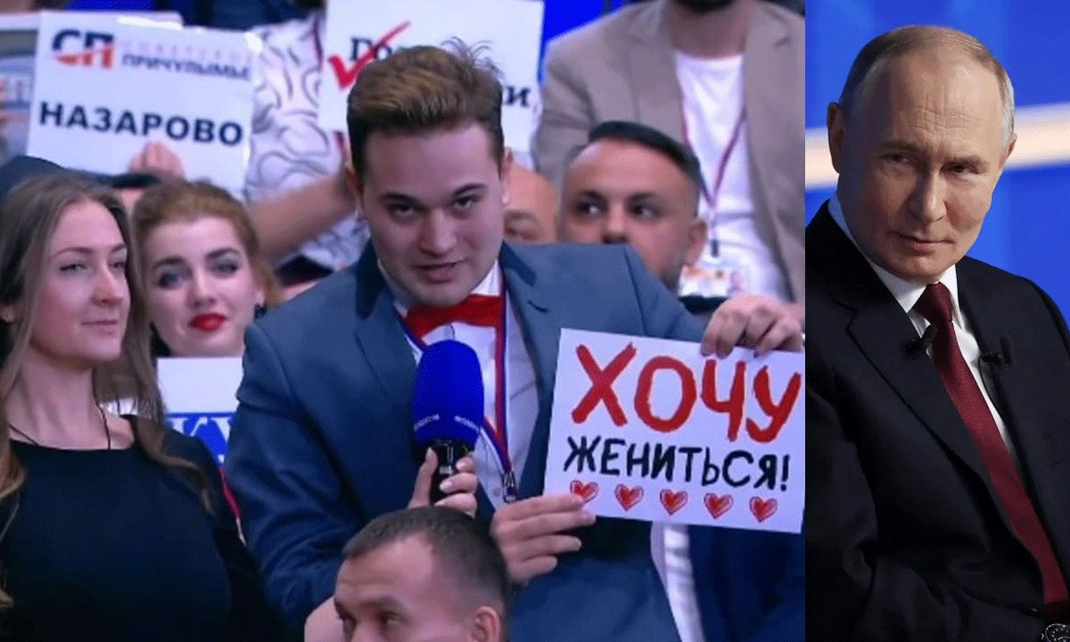 అనంతరం అతను పుతిన్ తో మాట్లాడుతూ.. రష్యాలో జీవన వ్యయం పెరిగిన తీరుపై ఆందోళన వ్యక్తం చేస్తూ.. తాను..తన గాళ్ ఫ్రెండ్ ఎనిమిదేళ్లుగా కలిసి ఉంటున్నామని.. పెద్ద ఎత్తున ఉన్న ఆర్థిక ఒత్తిళ్ల కారణంగా పెళ్లి చేసుకోవటానికి ఇబ్బందులు పడుతున్నట్లుగా పేర్కొన్నారు. ఇదిలా ఉంటే.. మీడియా సమావేశం జరుగుతున్న సమయంలోనే జర్నలిస్టు కిరిల్ బజానోవ్ పెళ్లి ప్రపోజనల్ ను అతడి స్నేహితురాలు అంగీకరించినట్లుగా ప్రకటించారు.