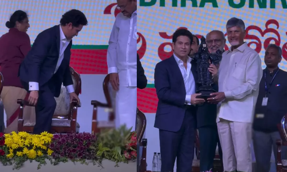 ఈ వేడుకలో ఒక దృశ్యం సభికులను మంత్రముగ్ధులను చేసింది. ముఖ్యమంత్రి నారా చంద్రబాబు నాయుడు.. క్రికెట్ దేవుడు సచిన్ టెండూల్కర్కు శ్రీ వేంకటేశ్వర స్వామి విగ్రహాన్ని జ్ఞాపికగా అందజేయడానికి సిద్ధమయ్యారు. ఆ సమయంలో సచిన్ చూపిన వినయం అందరినీ ఆశ్చర్యపరిచింది. విగ్రహాన్ని స్వీకరించే ముందు.. సచిన్ ఏమాత్రం తటపటాయించకుండా తన పాదరక్షలను (షూ) విడిచిపెట్టారు. దైవ ప్రతిమను అందుకునేటప్పుడు ప్రదర్శించాల్సిన కనీస ధర్మాన్ని, భక్తిని ఆయన చాటిచెప్పారు. కోట్లాది మంది ఆరాధించే ఒక అంతర్జాతీయ స్టార్.. అంతటి వినయాన్ని ప్రదర్శించడం చూసి సభికులు కరతాళ ధ్వనులతో ఆ ప్రదేశాన్ని మారుమోగించారు. ఈ వీడియో సోషల్ మీడియాలో వైరల్ కావడంతో "సచిన్ కేవలం గొప్ప ఆటగాడు మాత్రమే కాదు, గొప్ప సంస్కారవంతుడు కూడా" అంటూ నెటిజన్లు ప్రశంసల వర్షం కురిపిస్తున్నారు.