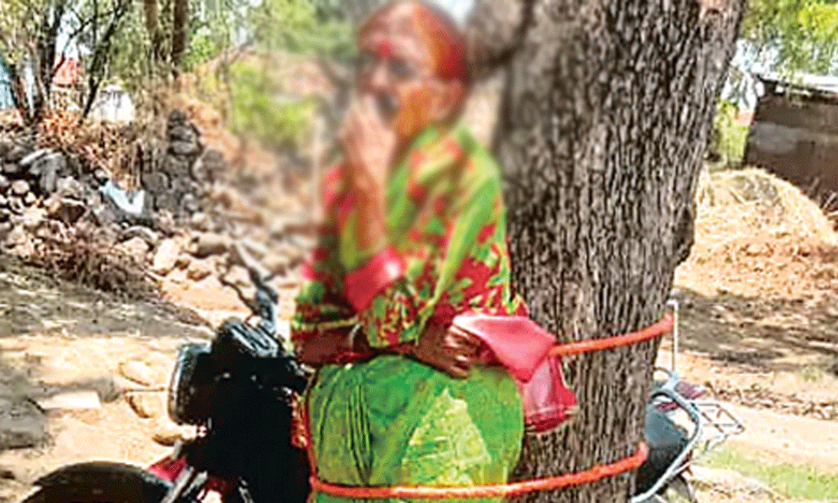 భర్త మోసం చేస్తే.. భార్యను చెట్టుకు కట్టేసి హింసించటమా?