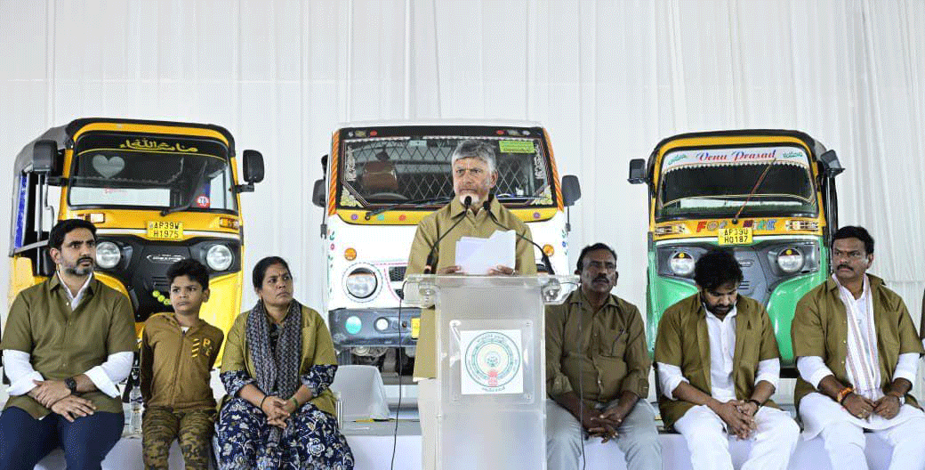 By: Tupaki Political Desk | 5 Oct 2025 1:43 PM ISTఏపీ ముఖ్యమంత్రి చంద్రబాబు ఆటో డ్రైవర్ల కోసం మంచి బిజినెస్ ప్లాన్ చేస్తున్నారు. ‘స్త్రీశక్తి’ పథకం వల్ల ఆర్థికంగా ఇబ్బంది పడుతున్న ఆటోడ్రైవర్ల సంక్షేమం కోసం ఆన్ లైన్ యాప్ తీసుకురావడంతోపాటు ప్రత్యేకంగా వారి సంక్షేమం కోసం ప్రత్యేక బోర్డును ఏర్పాటు చేస్తున్నట్లు ప్రకటించారు. శనివారం ‘ఆటోడ్రైవర్ల సేవలో’ కార్యక్రమాన్ని ప్రారంభించిన ముఖ్యమంత్రి చంద్రబాబు ఆటోడ్రైవర్ల కోసం తమ ప్రభుత్వం తీసుకోబోయే చర్యలను వివరించారు. ఇదే సమయంలో తమ ప్రభుత్వం మంచిని ప్రజల్లోకి తీసుకువెళ్లాలని ఆటోడ్రైవర్లను కోరారు.