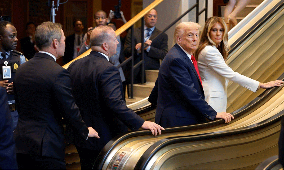 ఎస్కలేటర్పై ట్రంప్, మెలానియా అయోమయం