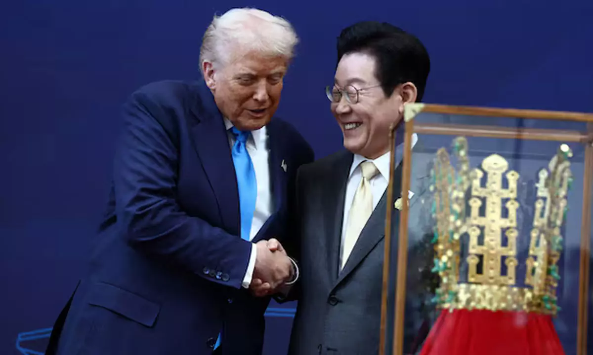 By: Raja Ch | 30 Oct 2025 11:10 AM ISTఅమెరికాలో 'రాజులు లేరు' అని పిలుపునిస్తూ స్వదేశంలో నిరసనలు ఎదుర్కొంటున్న ఆ దేశ అధ్యక్షుడు డొనాల్డ్ ట్రంప్.. తాజాగా బంగారు కిరీటాన్ని బహుమతిగా అందుకున్నారు. కొరియా ద్వీపకల్పాన్ని క్రీస్తుపూర్వం 57 నుండి క్రీ.శ 935 వరకు పాలించిన సిల్లా రాజవంశం రాజులు ధరించిన కిరీటం ప్రతిరూపాన్ని డొనాల్డ్ ట్రంప్ కు దక్షిణ కొరియా అధ్యక్షుడు లీ జే మ్యుంగ్ బహుకరించారు.