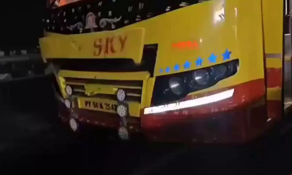 By: Garuda Media | 19 Nov 2025 1:56 PM ISTఅవును.. వి.కావేరికి చెందిన మరో బస్సు త్రుటిలో ఘోర ప్రమాదం నుంచి తప్పించుకుంది. కర్నూలు జిల్లాలో చోటు చేసుకున్న పెను ప్రమాదంలో పెద్ద ఎత్తున (19 మంది) ప్రయాణికులు మంటల్లో కాలి బూడిద కావటం.. అప్పటి నుంచి వి.కావేరీ అంటేనే అమ్మో అనుకునే పరిస్థితి. ఇదిలా ఉంటే.. తాజాగా చోటు చేసుకున్న పరిణామం గురించి తెలిస్తే మాత్రం.. వి.కావేరీ అంటేనే వణుకు పుట్టేలా ఉండటం గమనార్హం.