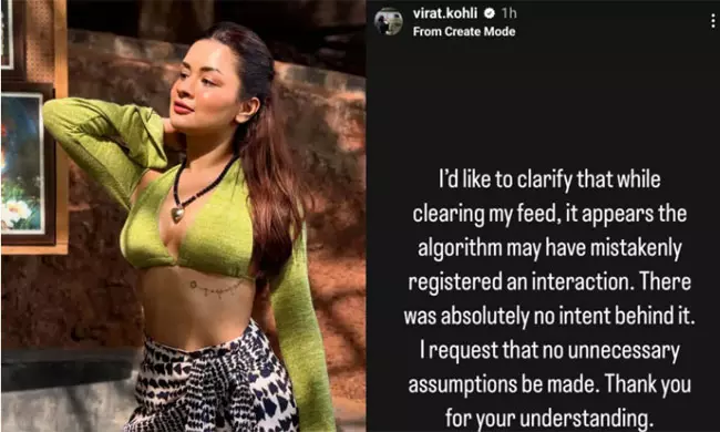 ఈ వ్యవహారంపై వస్తున్న వార్తలను, ఊహాగానాలను గమనించిన విరాట్ కోహ్లీ వెంటనే తన ఇన్స్టాగ్రామ్ స్టోరీస్ ద్వారా స్పష్టతనిచ్చారు. తన వివరణ పేర్కొన్నారు. "నేను నా ఫీడ్ను క్లియర్ చేస్తున్నప్పుడు, అల్గారిథమ్ పొరపాటున ఒక ఇంటరాక్షన్ను నమోదు చేసినట్లు అనిపిస్తోంది. దీని వెనుక ఎటువంటి ఉద్దేశ్యం లేదు. దయచేసి ఎవరూ అనవసరమైన ఊహాగానాలు చేయవద్దని నేను కోరుతున్నాను. మీ అవగాహనకు ధన్యవాదాలు" అని కోహ్లీ రాసుకొచ్చారు. అంతేకాకుండా, ఆ లైక్ను కూడా వెంటనే ఉపసంహరించుకున్నట్లు తెలిసింది.