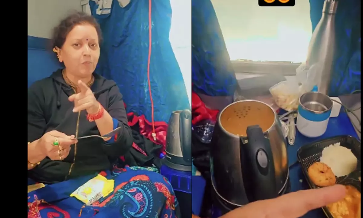 రైల్లోని ఏసీ బోగీలో ప్రయాణిస్తున్న ఒక మహిళ.. సీటు కోసం కోట్లాడలేదు. కానీ.. తన బెర్తులో కూర్చున్న కాసేపటికి తన బ్యాగ్ లో నుంచి ఎలక్ట్రిక్ కెటిల్ బయటకు తీశారు.