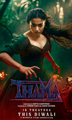 హిందీలో హార్రర్ కామెడీ సినిమాలతో ఒక యూనివర్శ్ ను క్రియేట్ చేసింది మ్యాడ్ రాక్ ఫిలిమ్స్ సంస్థ. అందులో బేడియా (తోడేలు).. ముంజియా.. స్త్రీ సినిమాలు ఒకదాన్ని మించి ఒకటి విజయం సాధించాయి. ఈ కోవలోనే ఇప్పుడు ‘థామా’ సినిమా తెరకెక్కింది. రష్మిక మందన్నా ప్రధాన పాత్ర పోషించడంతో ఈ చిత్రం దక్షిణాది ప్రేక్షకుల దృష్టిని కూడా ఆకర్షించింది. ఈ రోజే పాన్ ఇండియ ా స్థాయిలో రిలీజైన ఈ చిత్ర విశేషాలేంటో చూద్దాం పదండి.