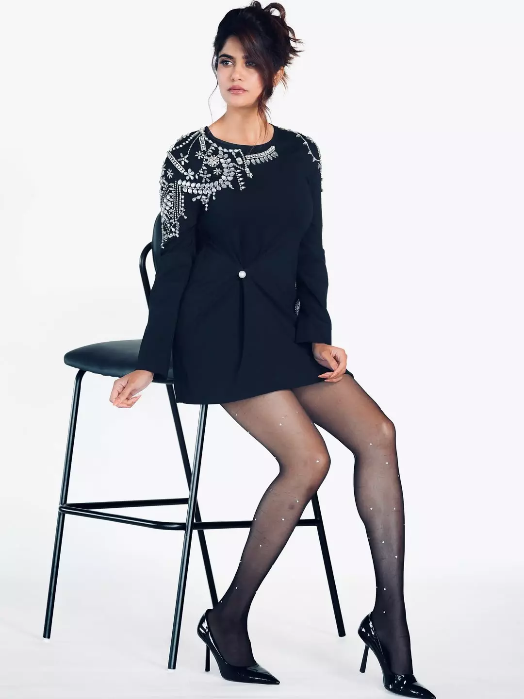 By: Priya Chowdhary Nuthalapti | 24 Sept 2025 11:22 AM ISTAaditi Pohankar recently shared gorgeous picture on Instagram. In the photo, she is seen sitting gracefully on a chair, wearing a stylish black dress with silver embellishments. The outfit, designed by Kay Kay Worldwide, is paired with sheer stockings and black heels, giving her a glamorous and elegant look. Her caption reads, “In thy gaze, I find my forever.” This poetic line perfectly complements the sophistication of her appearance.