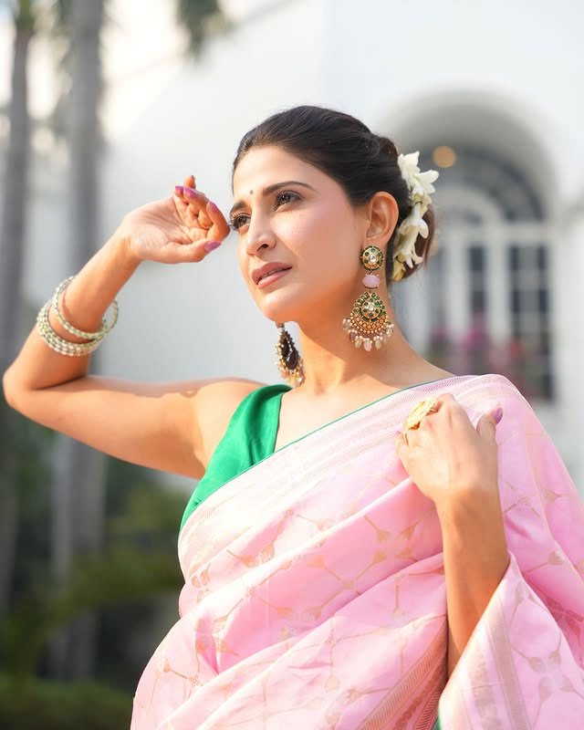 She tagged @angel-_crochetswimwear for her swimwear.She also tagged @raja-_aviator for the photography.In the picture, Aahana is near a garden staircase.She is wearing a striped red and white swimwear set.A flower rests in her hair.She looks relaxed and is enjoying the sunny weather.