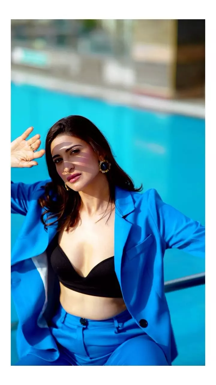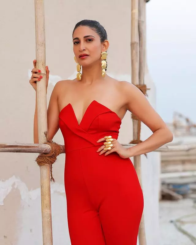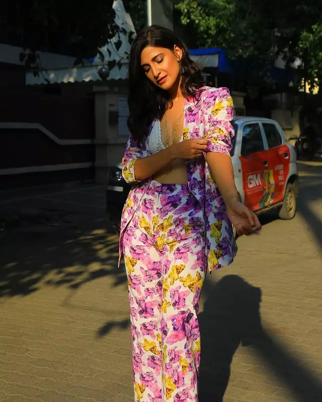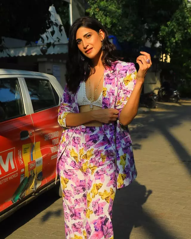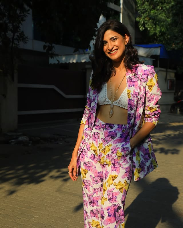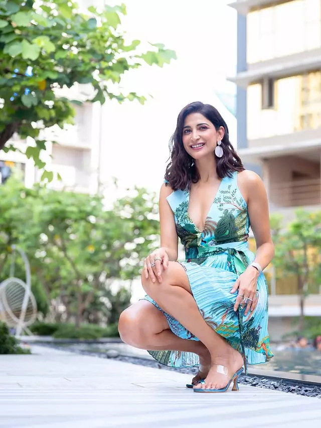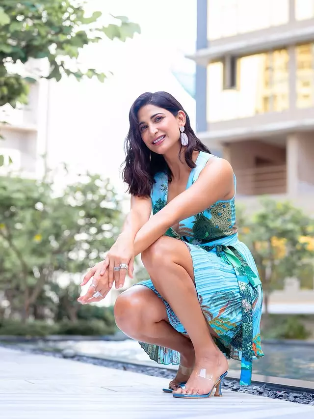 Aahana S Kumra turned heads with her radiant charm and effortlessly stylish look in a tropical-themed sleeveless dress. The sky-blue base adorned with lush green foliage and wildlife prints gave her outfit a fresh, breezy vibeperfect for a sunny day. The plunging neckline added a bold flair, while the cinched waist with a printed tie accentuated her silhouette beautifully.
