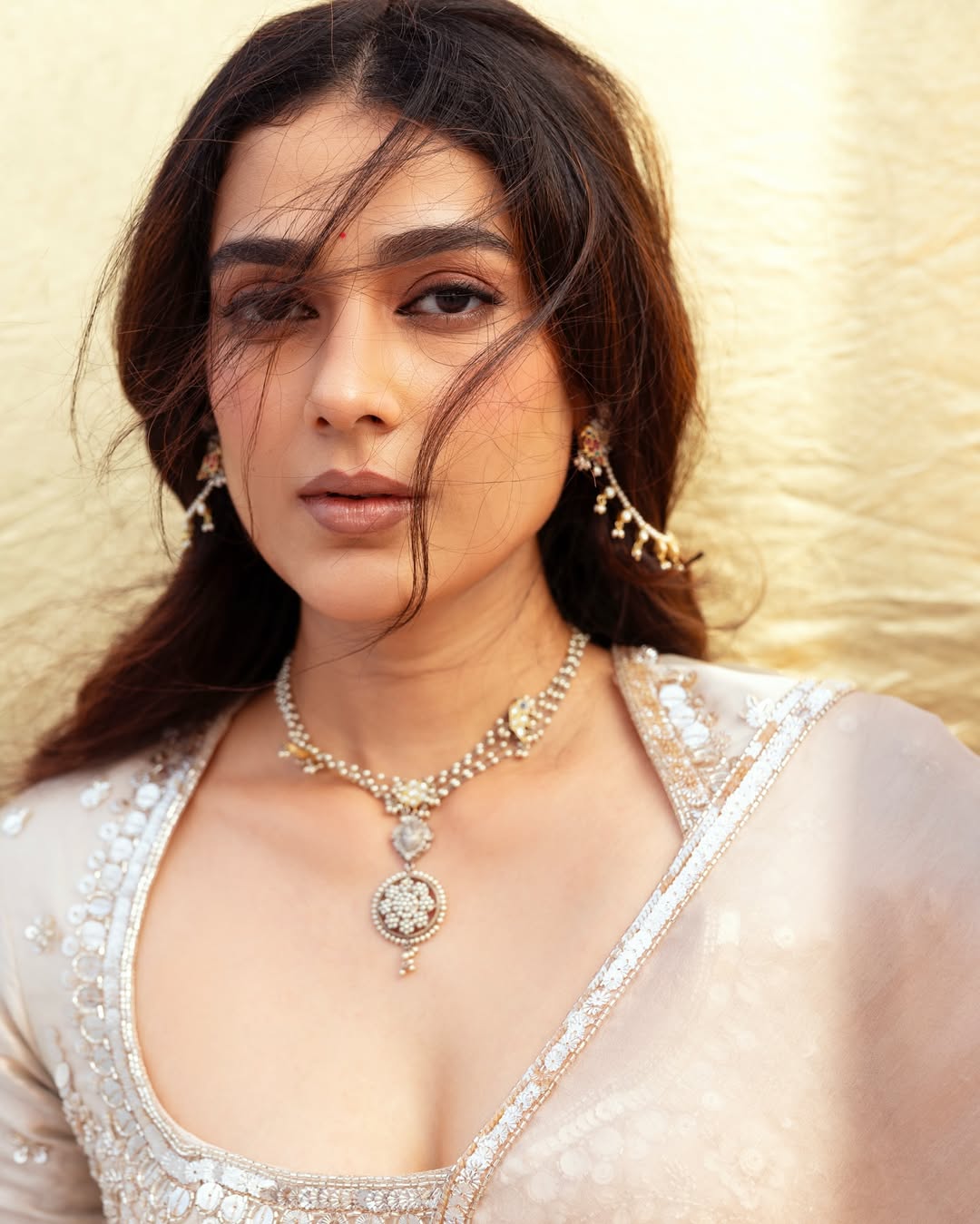 Actress Aakanksha Singh is turning heads with her traditional yet glamorous look in her latest Instagram picture. The picture which she recently shared with her fans shows Aakanksha looking breathtaking in a beautiful beige-colored saree with intricate gold embroidery.