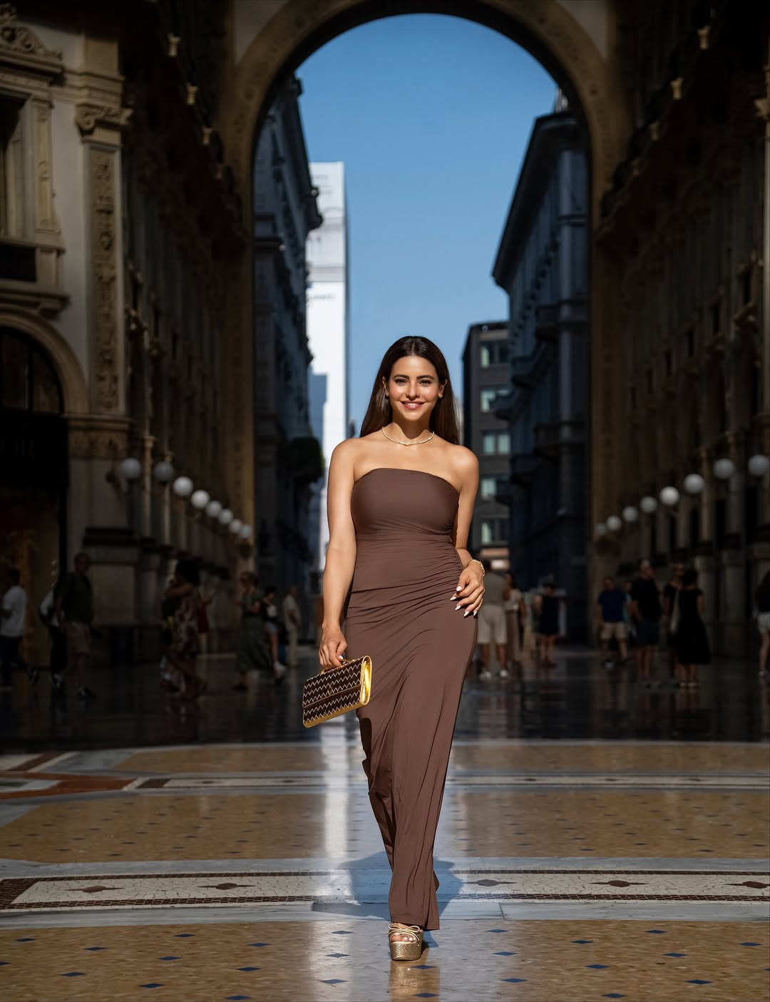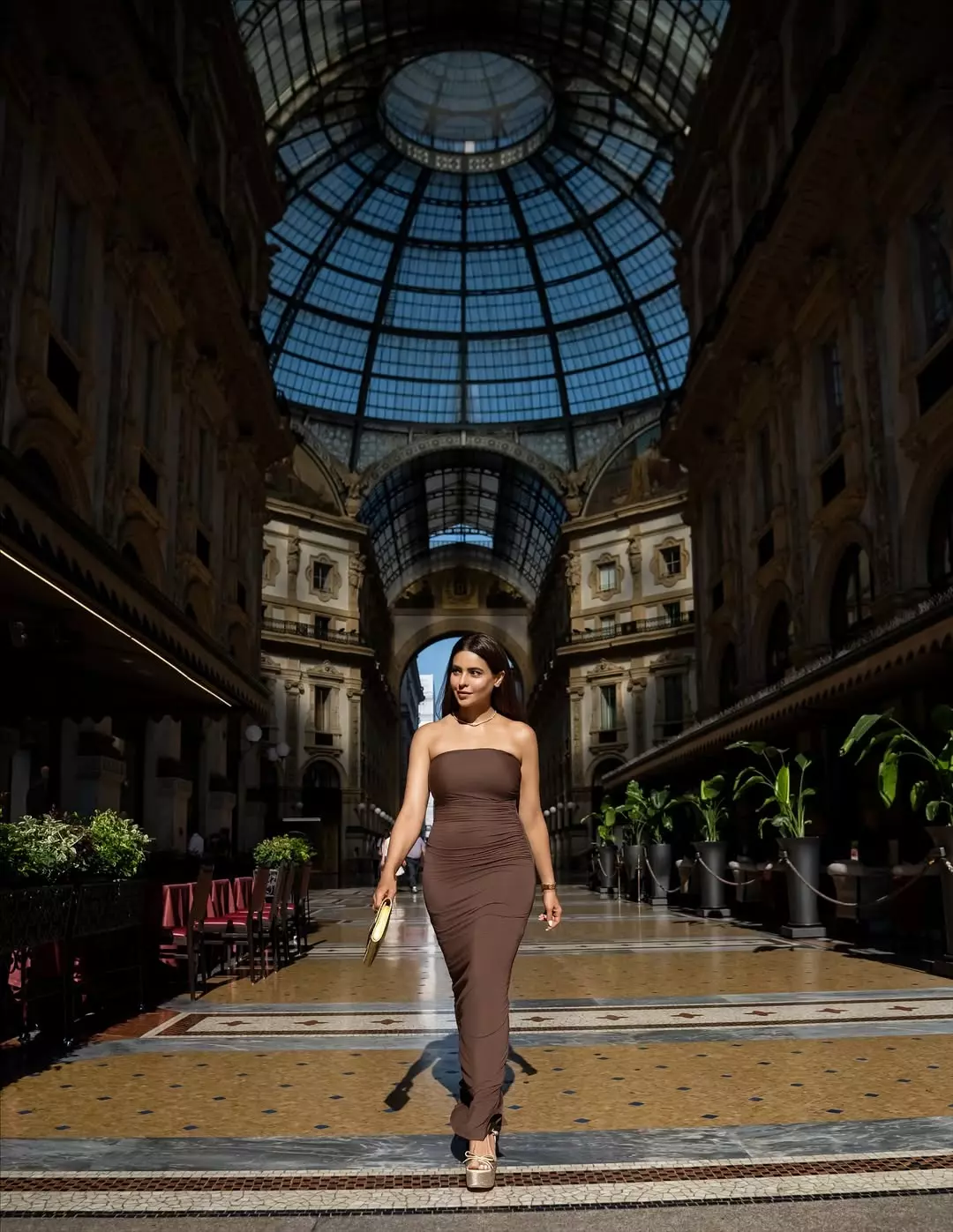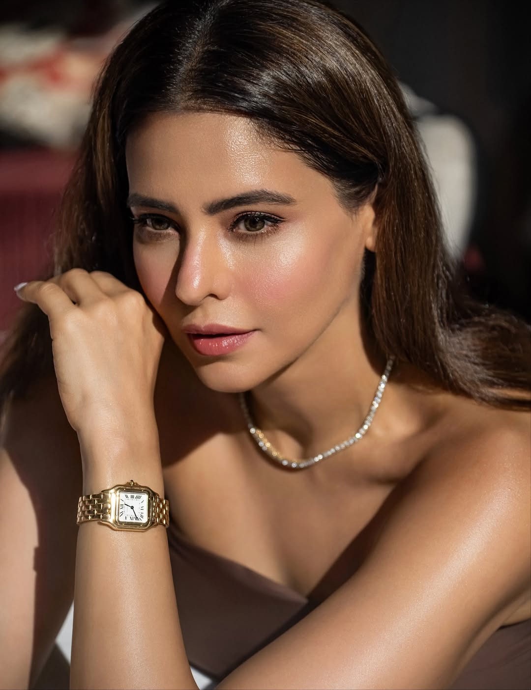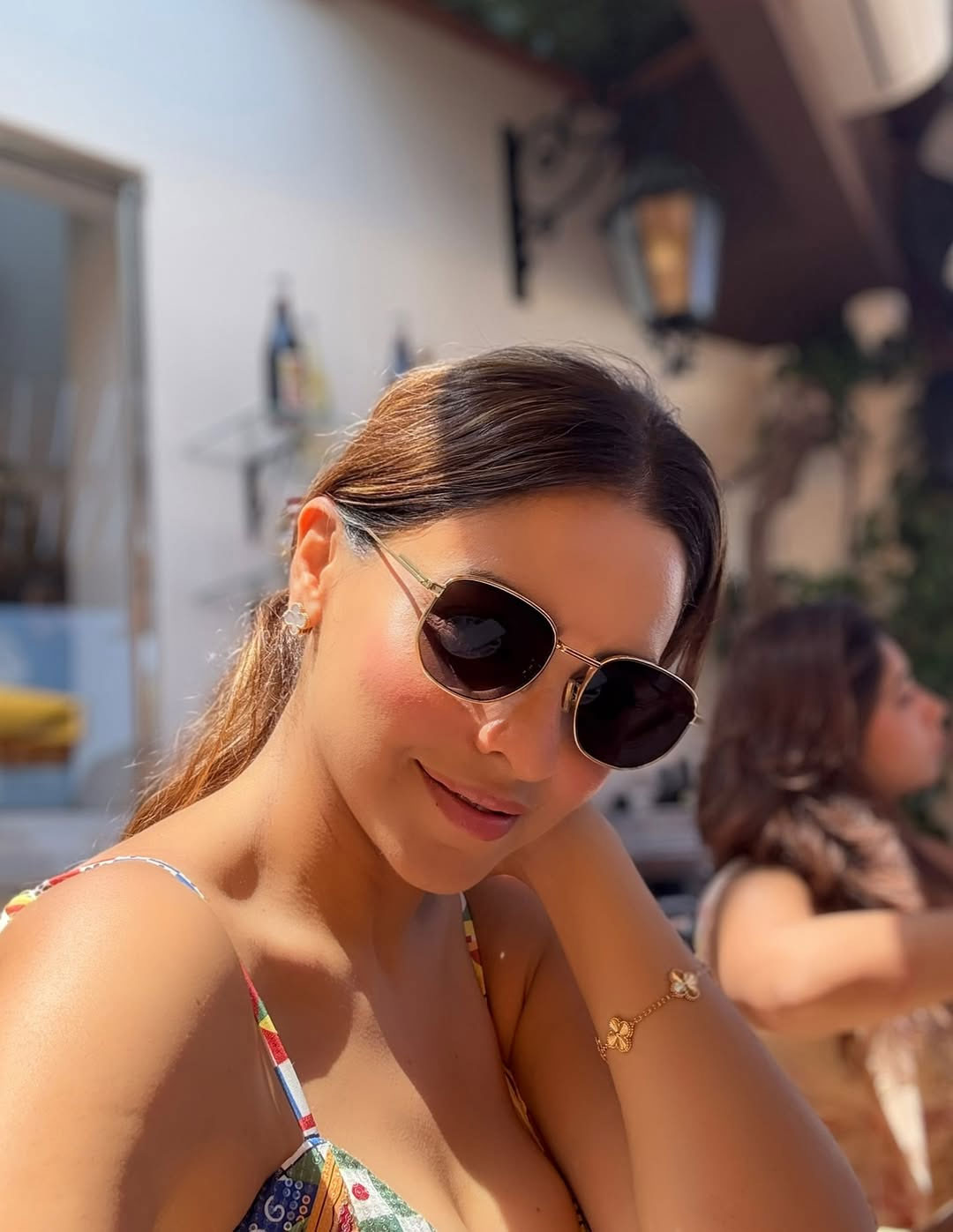 Keeping the styling minimal yet impactful, Aamna accessorized with a simple bracelet and allowed her natural wavy hair to cascade freely. Her makeup was soft and understated, with contoured cheeks and matte lips that harmonized beautifully with the earthy tones of her outfit. The overall vibe was effortless, beach-ready glamour infused with a hint of sophistication.