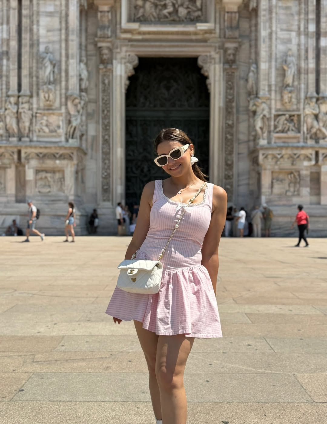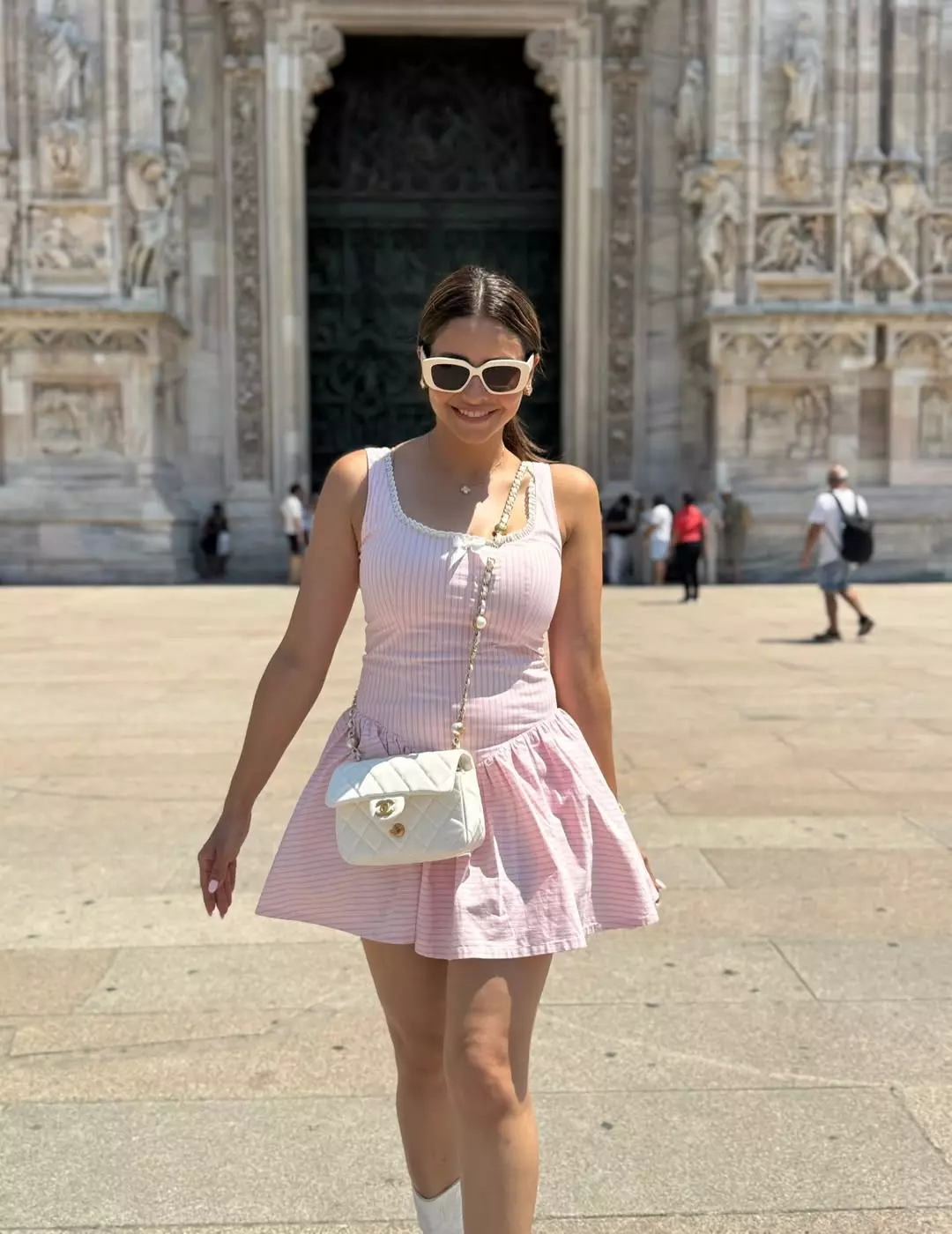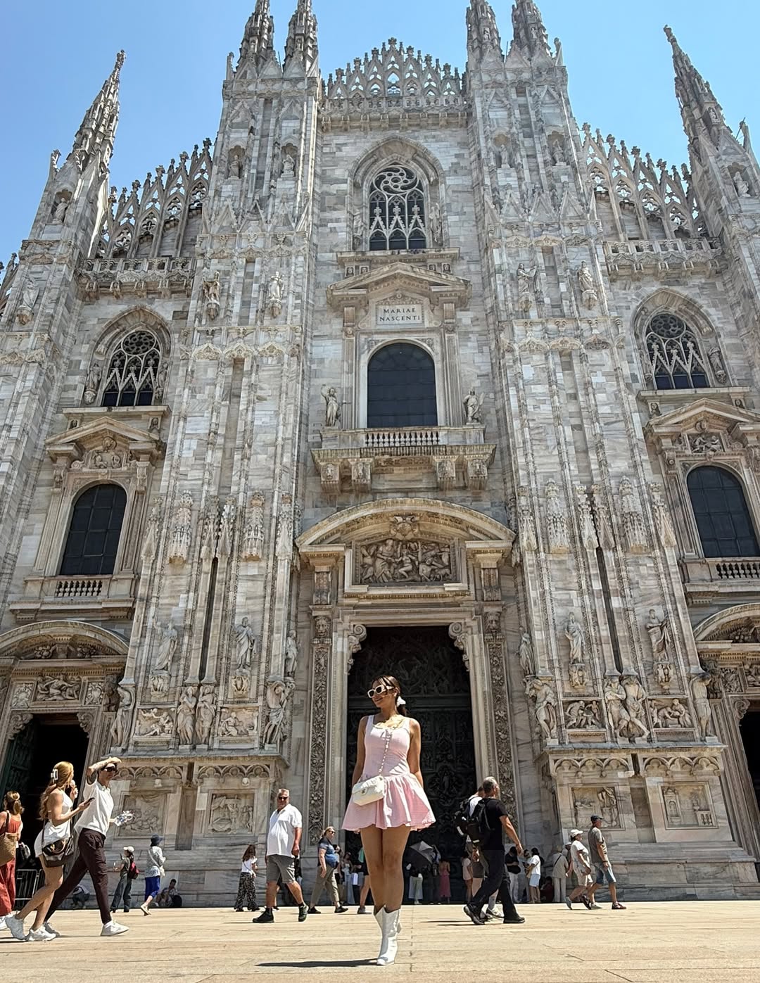 The actress posted a photo on Instagram wearing a stylish light pink dress with the caption: β€œWhen in Milan, wear pink πŸŽ€πŸ€—β€.