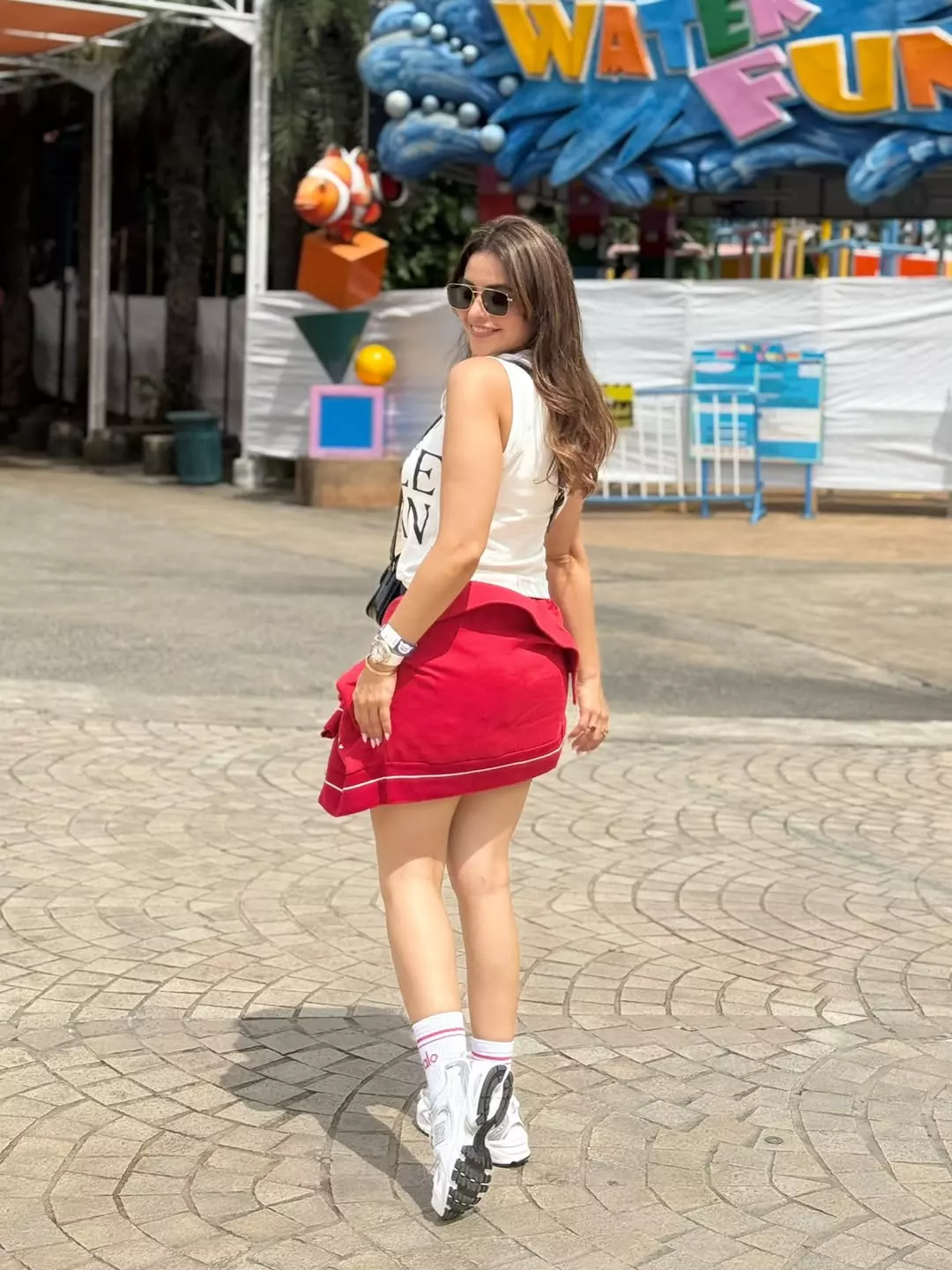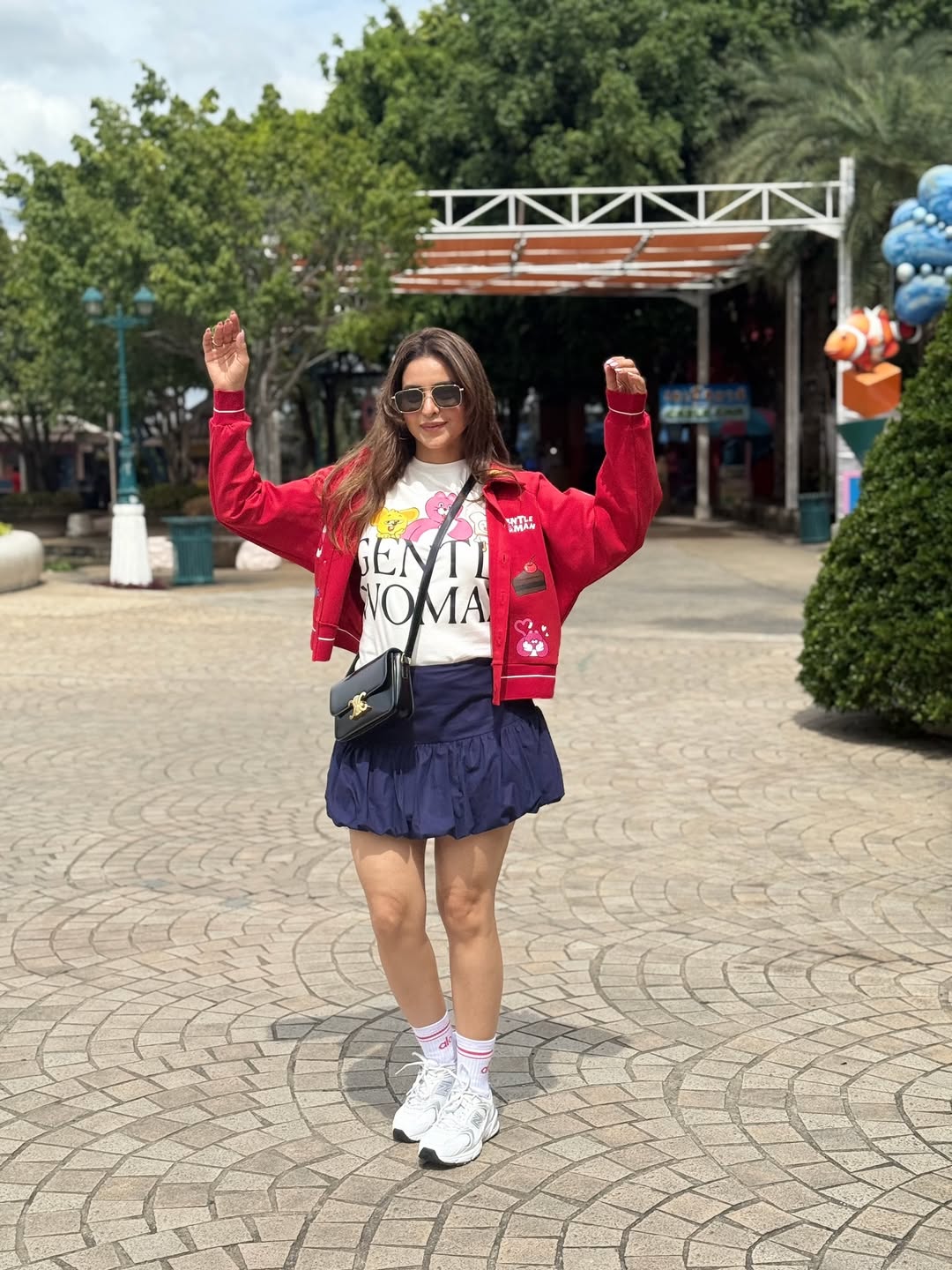 By: Tupaki Desk | 24 Dec 2025 2:59 PM ISTTelevision sensation Aamna Sharif brings effortless fun and chic energy to the streets in this vibrant casual look. Rocking a white blazer adorned with colorful Snoopy cartoons and playful graphics, paired with a black crop top, mini tennis skirt, chunky sneakers, oversized sunglasses, and a mint green handbag, she exudes youthful charm and confidence against an urban backdrop.Wat a fun day