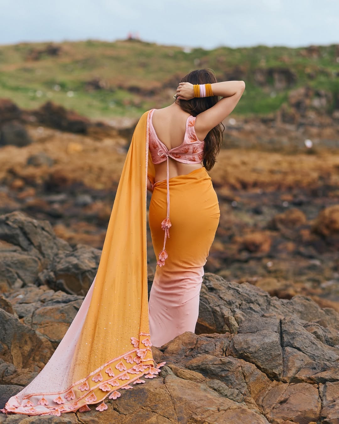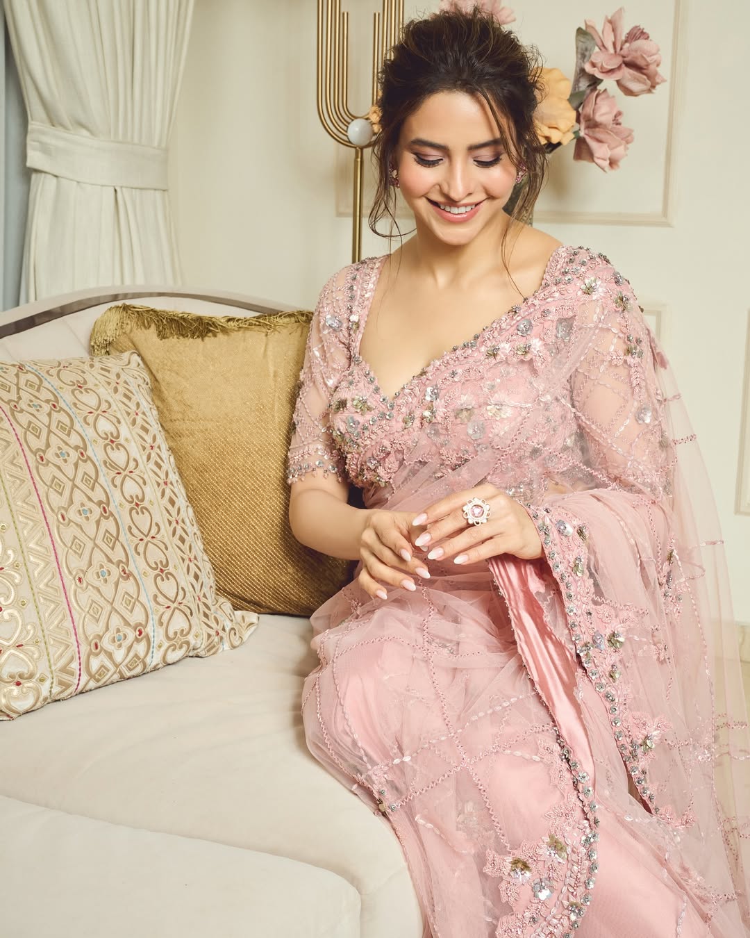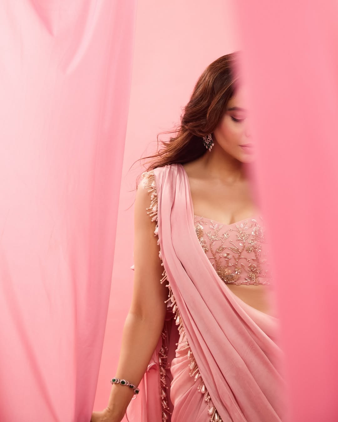 In the caption, she wrote, “Yooh hee milo humse tum janam-janam..” which means “Meet me like this for lifetimes to come.” Many fans reacted with hearts and warm comments. The post also tagged her team: @tuhinasrivastava-_ @shrushti-_216 @mukeshpatilmakeup @little-_hair-_poetry @cine-_raaz.fashion. She used hashtags #saree and #sareelove❤️.