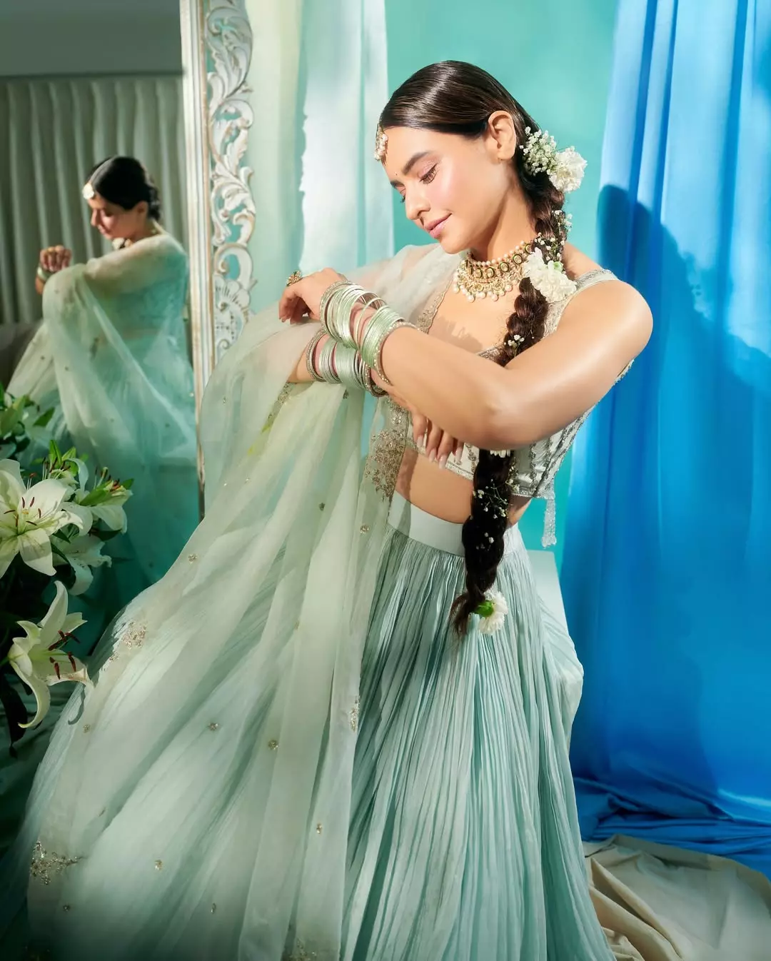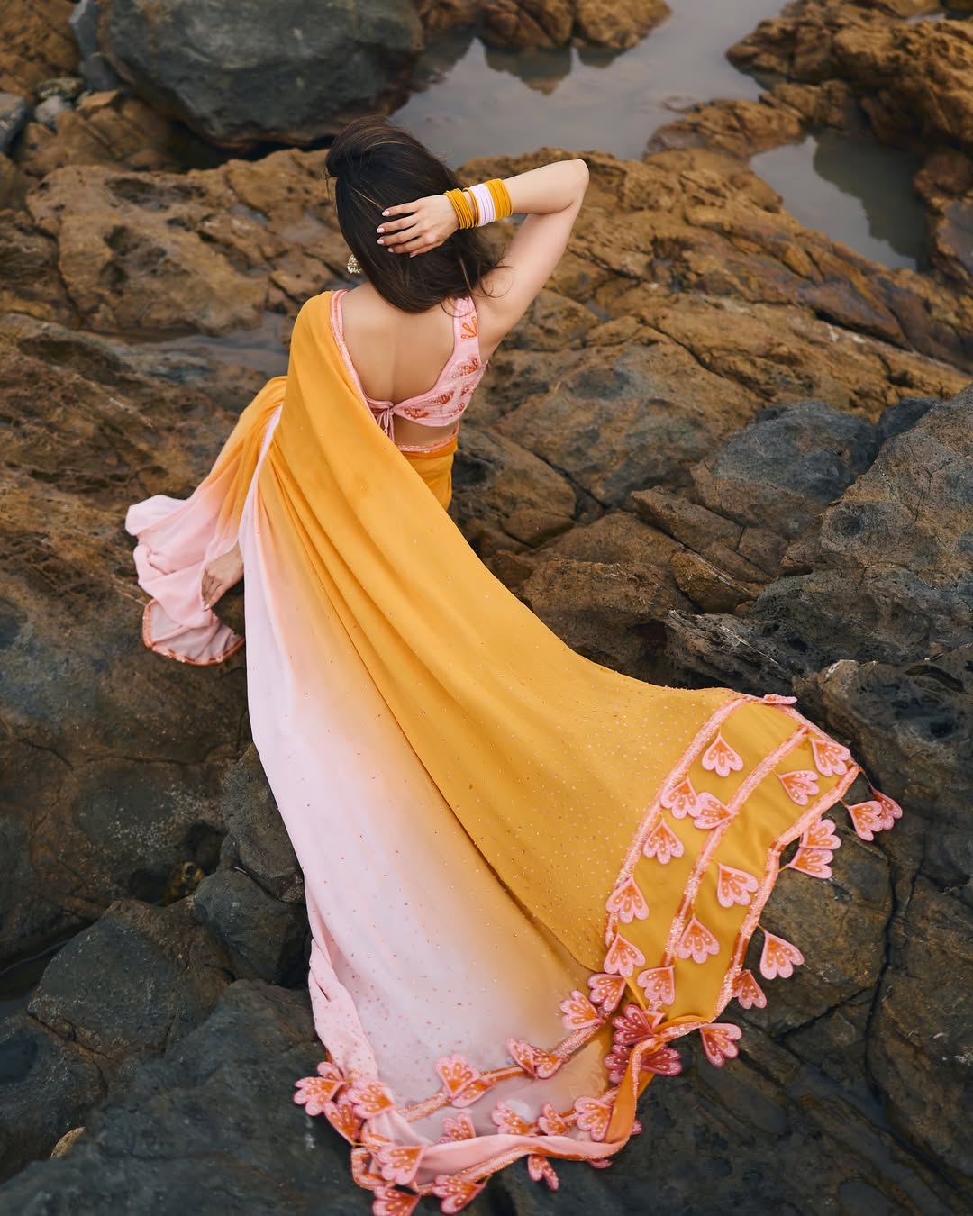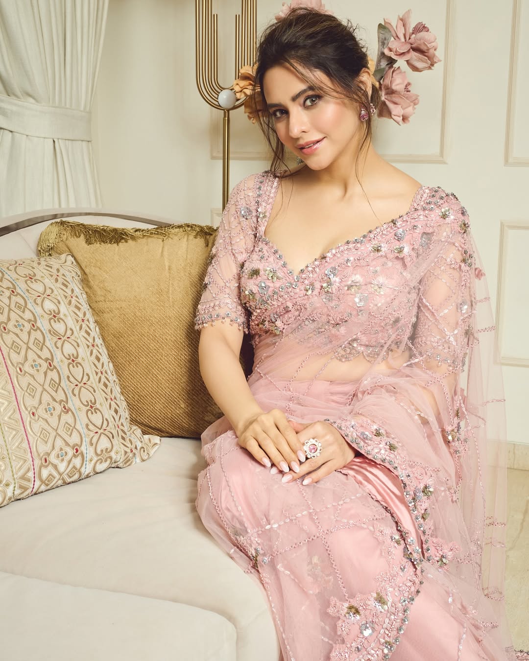 In the caption, she wrote, “Yooh hee milo humse tum janam-janam..” which means “Meet me like this for lifetimes to come.” Many fans reacted with hearts and warm comments. The post also tagged her team: @tuhinasrivastava-_ @shrushti-_216 @mukeshpatilmakeup @little-_hair-_poetry @cine-_raaz.fashion. She used hashtags #saree and #sareelove❤️.