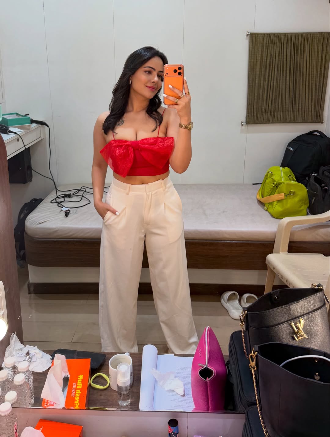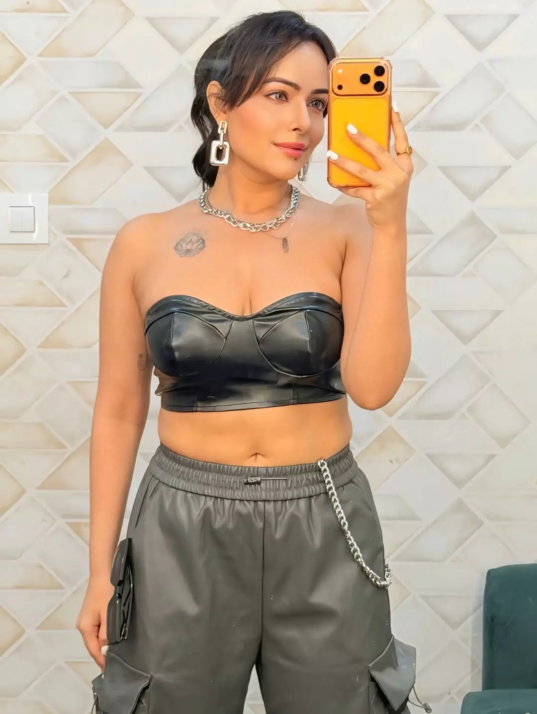 By: Priya Chowdhary Nuthalapti | 2 Dec 2025 12:05 AM ISTAanchal Munjal known for her work in Hindi, Telugu and Tamil films, shared a fresh and bold photo on Instagram that quickly caught the attention of her fans. In the picture, Aanchal is seen taking a mirror selfie while wearing a stylish black leather top and matching cargo pants.