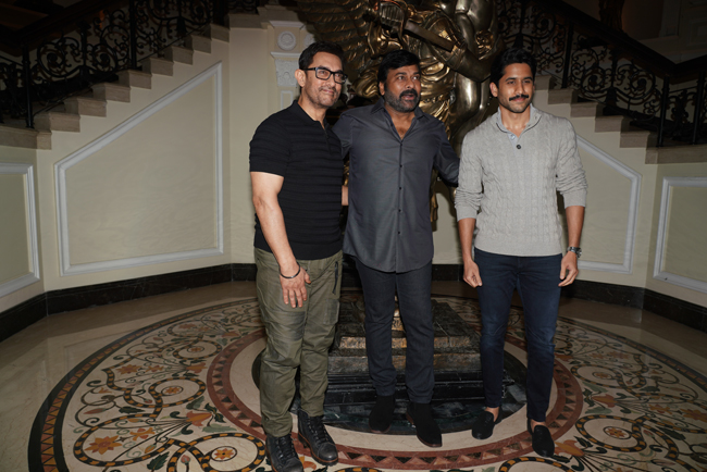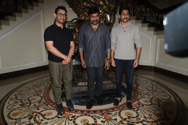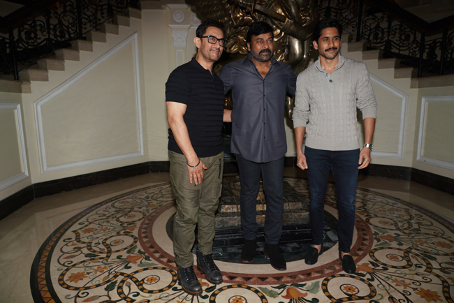 Aamir Khan Chiranjeevi Nagachaitanya At Laal Singh Chadda Promotions In Hyderabad