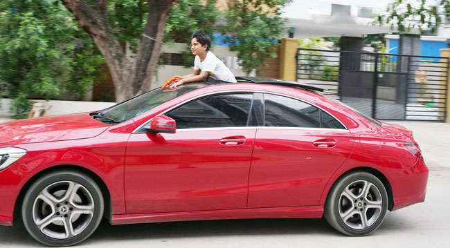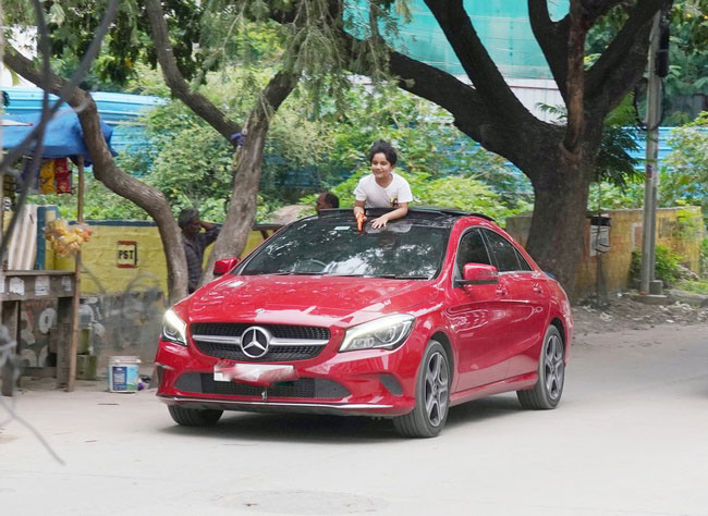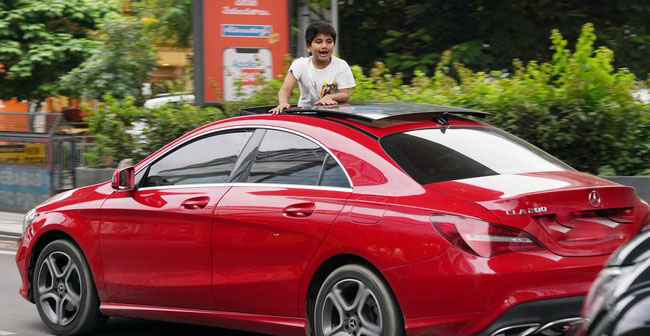 Allu Arjun son Allu ayan spotted enjoying car ride in city Hyderabad