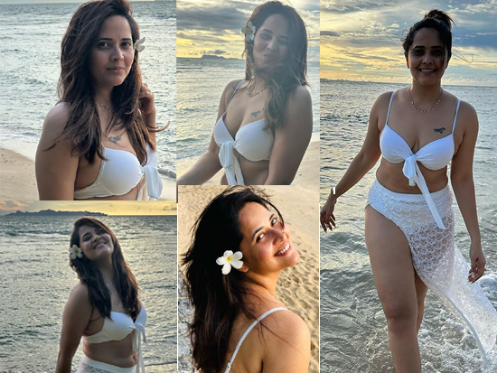 1 / 16Astonishing Clicks Of Anasuya In White Swimwear