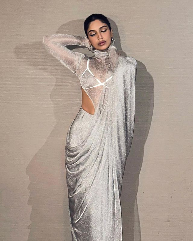 Fashionable Clicks Of Bhumi Pednekar In Silver Saree