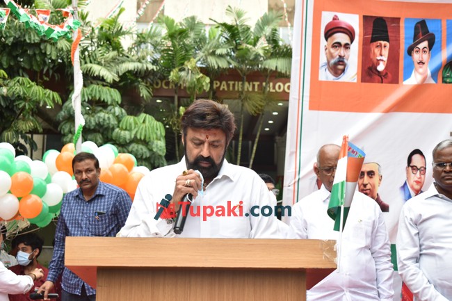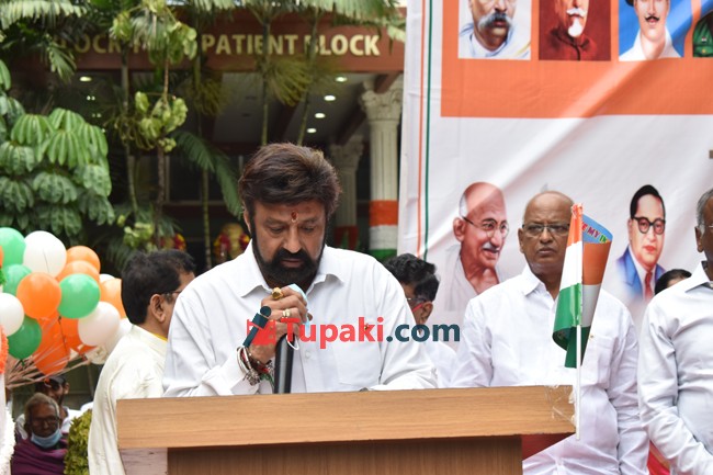 NBK Hoisting Indian Flag At Basavatarakam Hospital