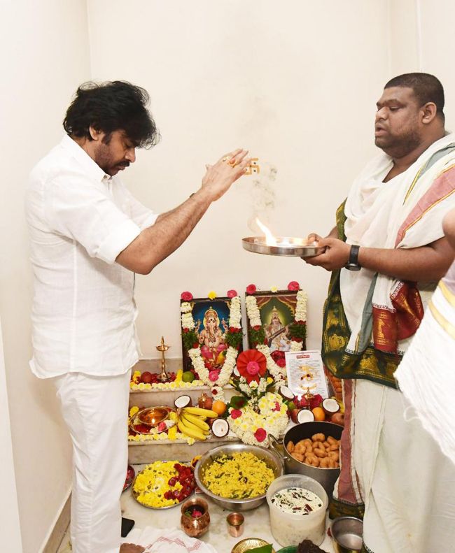 Pawan At Saraswathi Puja In Hyd Janasena Office