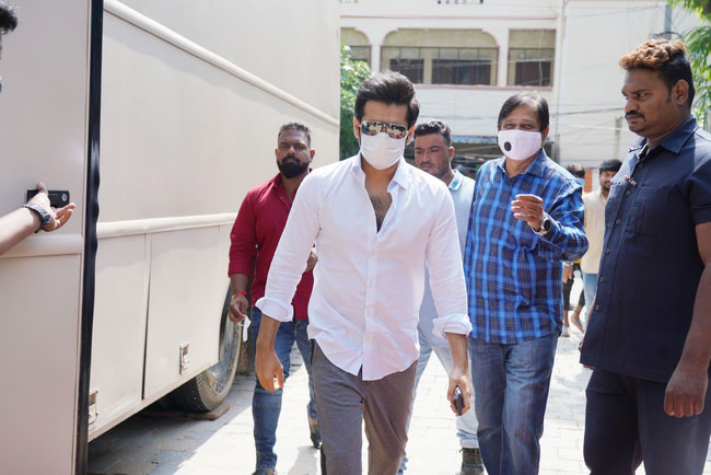 Ram Pothineni arrived on sets for an ad shoot in hyderabad