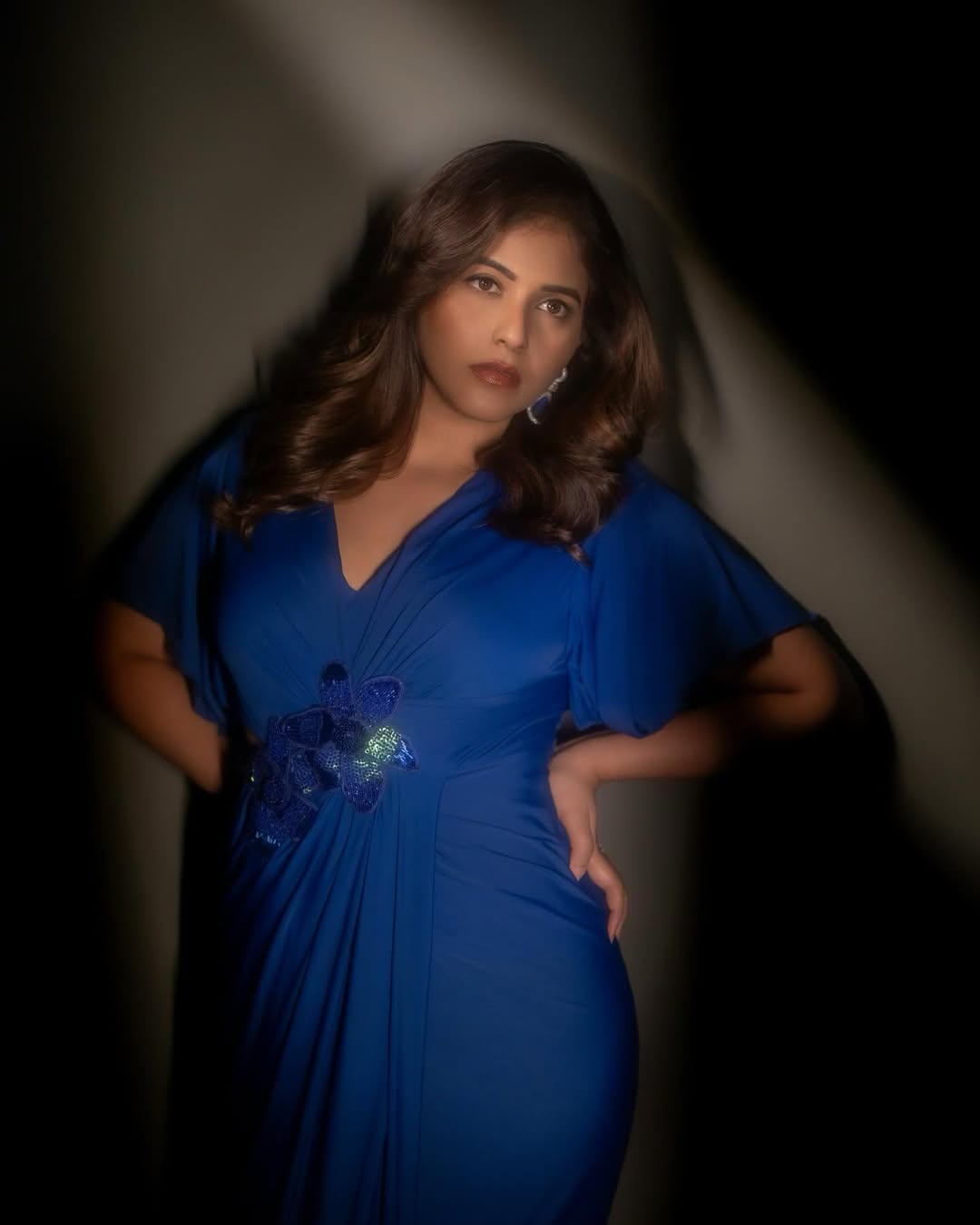 She also gave credit to the team behind her look. Styling was done by Raji Raaga, the saree was from Bhargavi Kunam, makeup and hair were handled by Vijisha Rath, and the photo was captured by Parvatham Suhas Photography.