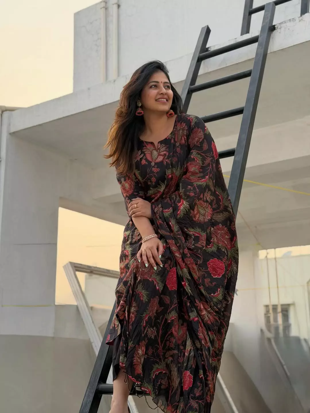 By: Priya Chowdhary Nuthalapti | 4 April 2026 10:20 PM ISTPopular actress Anjali recently shared a lovely photo on Instagram that caught the attention of her fans. In the picture, she is standing in a wooden corridor, wearing a soft and elegant saree with colorful prints. Along with the photo, Anjali wrote a simple caption: “A corridor, a moment, a mood.”