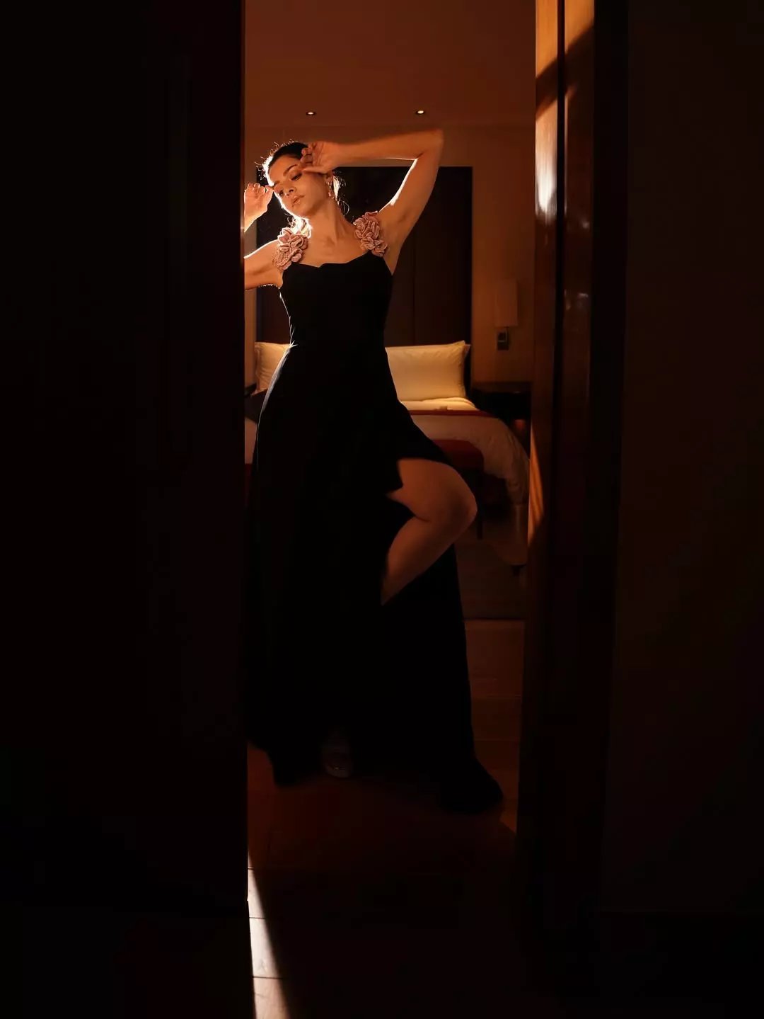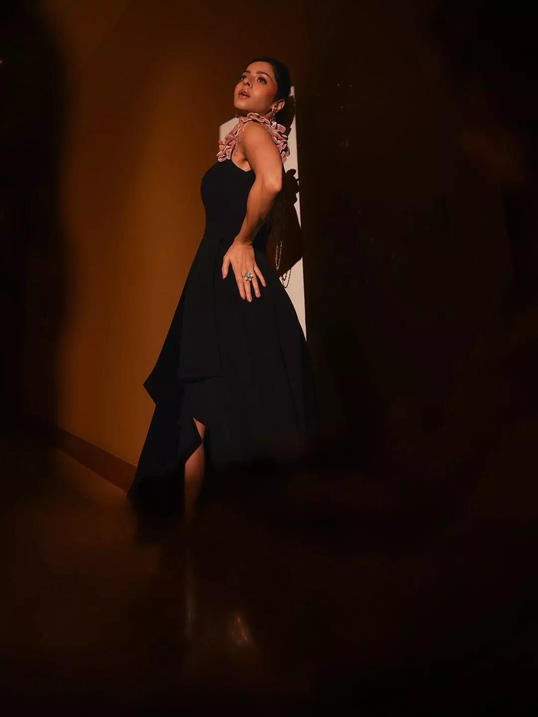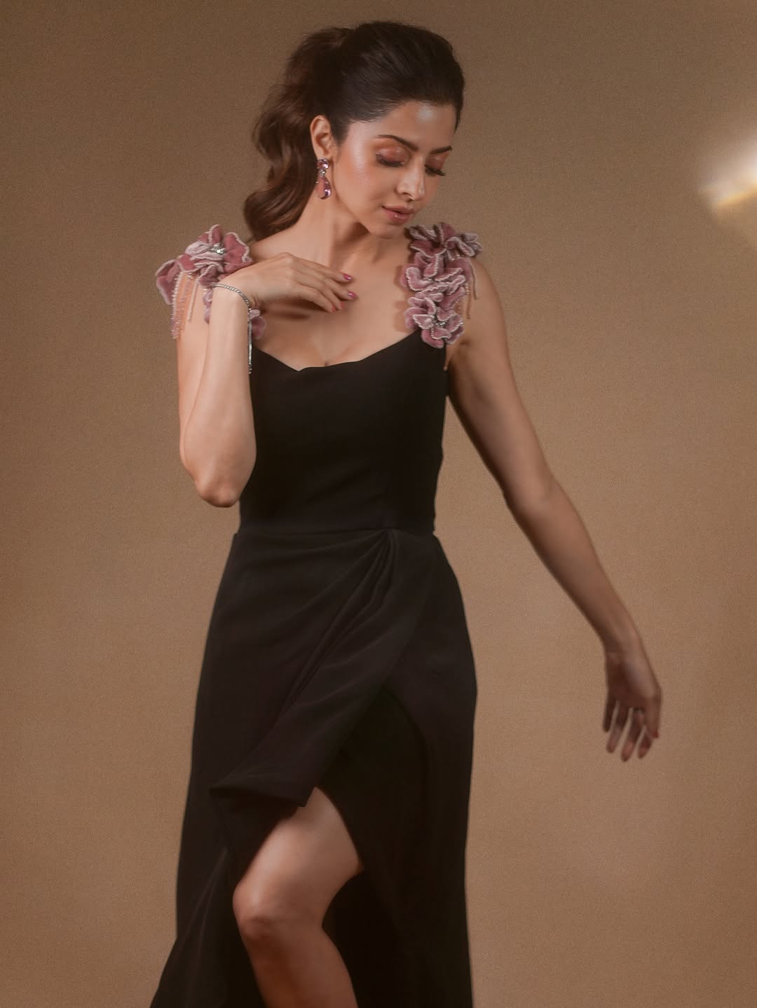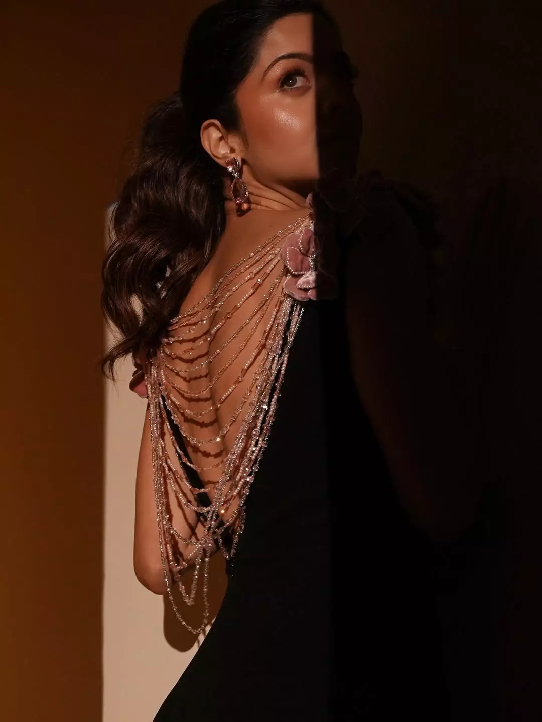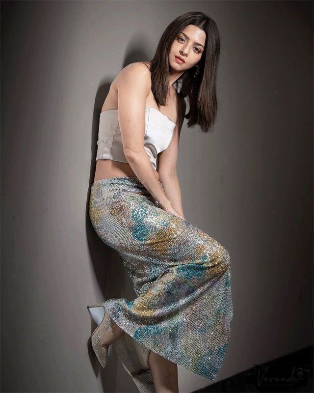 Vedhika recently shared a series of pictures on Instagram. Her caption was “🦩”.She looked graceful in a long black dress designed by @zvezda-_atelier. The detailing on the shoulders added an elegant touch. Her style was completed with jewelry from @aurelius-_jewels. Her hair was done by @sunny-_hairr. The look was styled by @officialanahita with support from @pranathivarma.k. The photos were captured by @pramodcaptures. The pictures had a warm background light. It gave a calm and glowing mood to the shots.