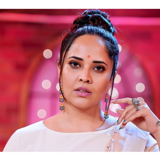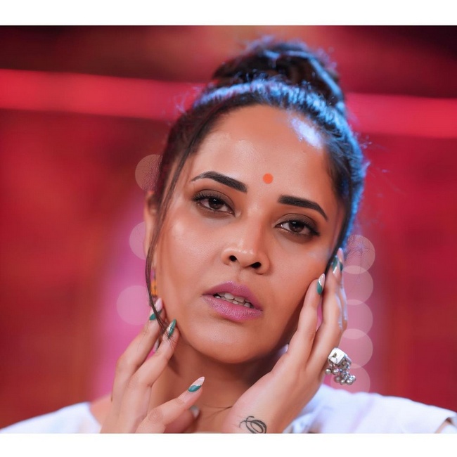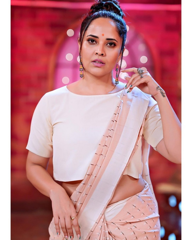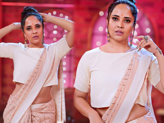Anasuya Bharadwaj Glamorous pics in White Saree