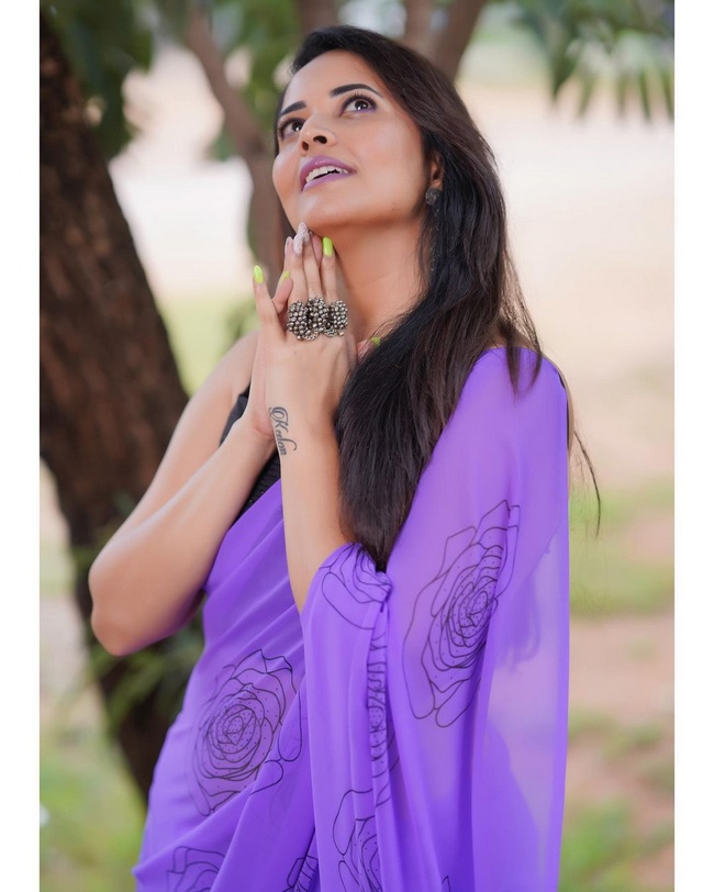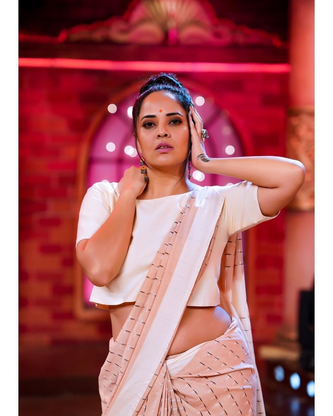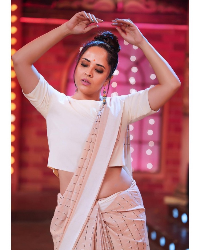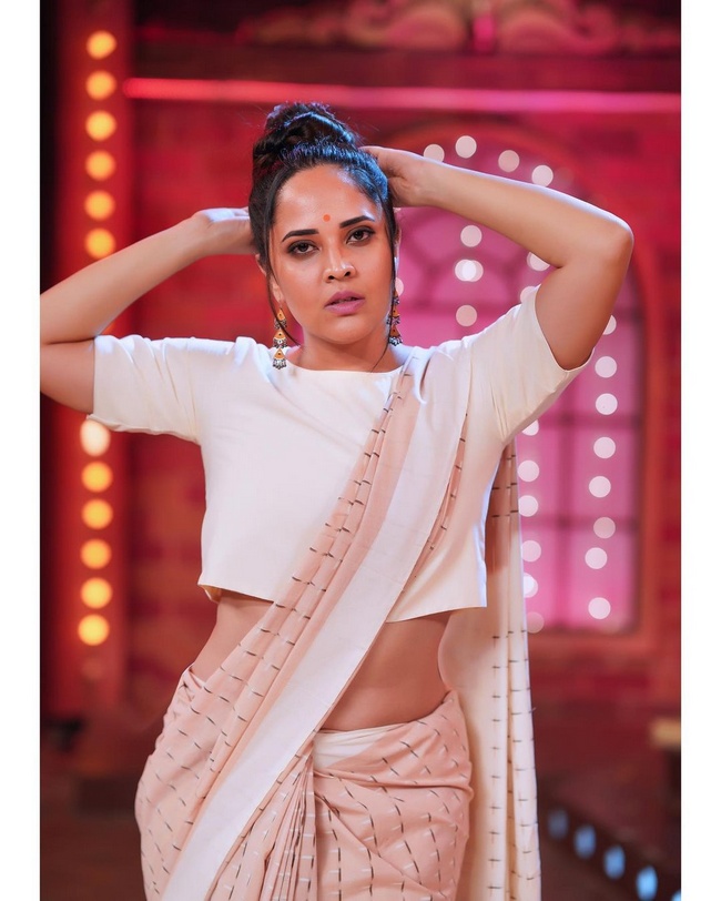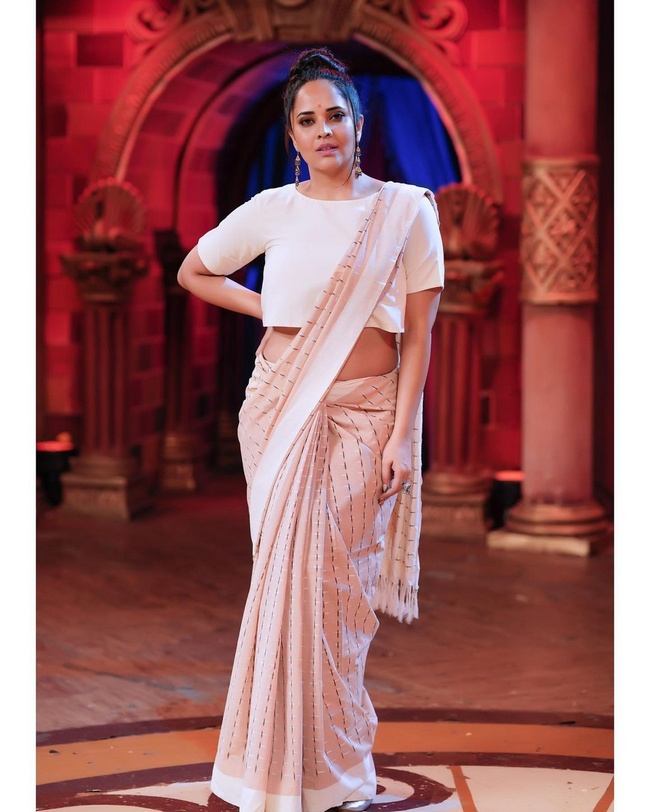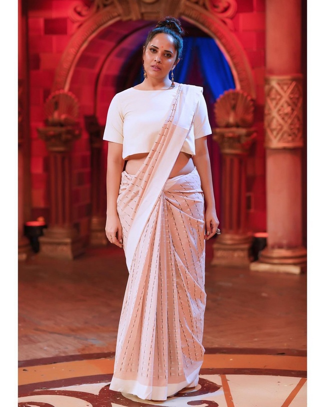 5 / 21Anasuya Bharadwaj Glamorous pics in White Saree