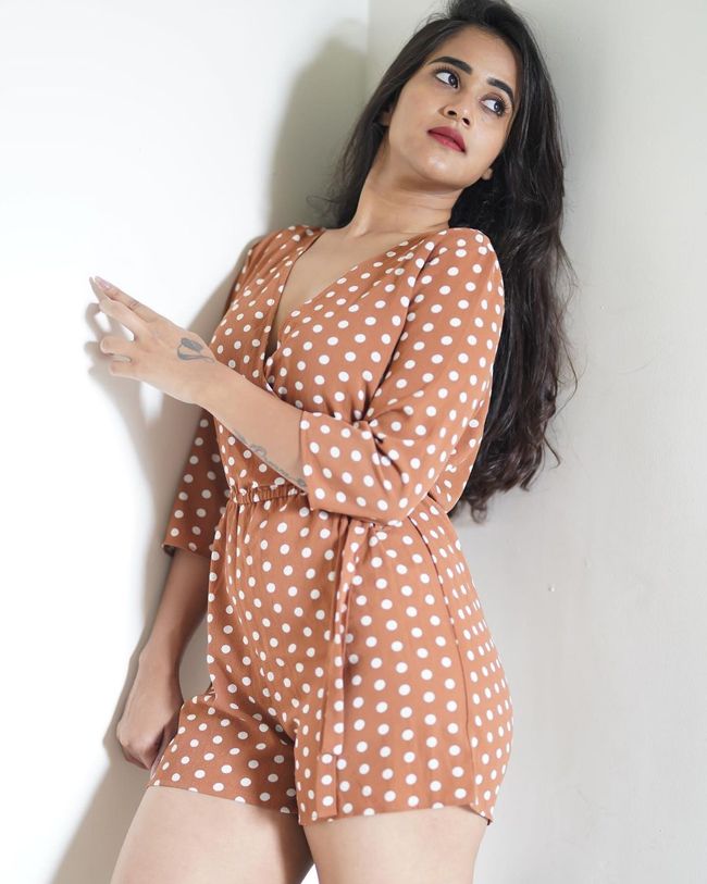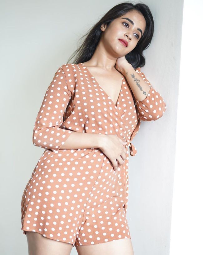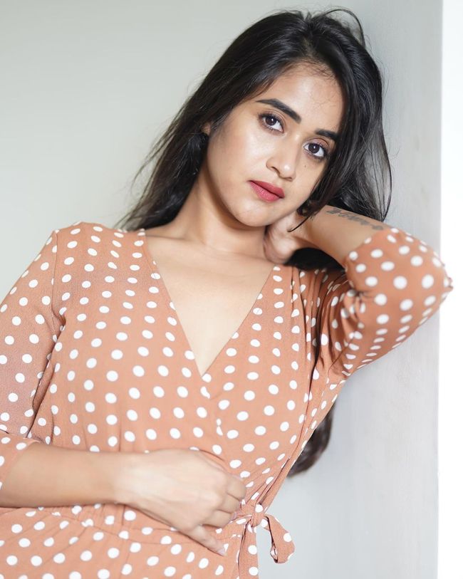 Deepthi Sunaina Delightful Looks In Polka Dot Dress