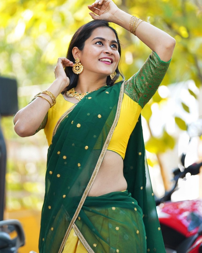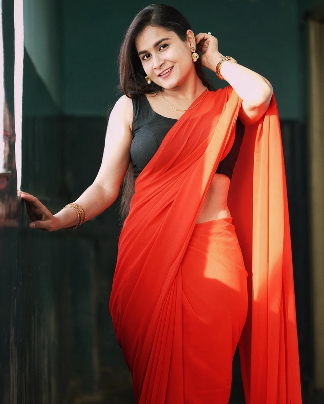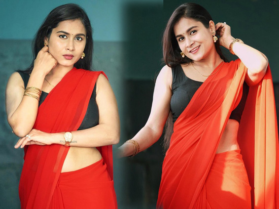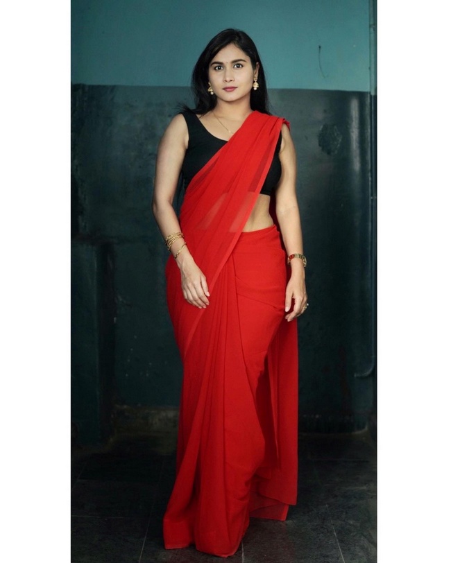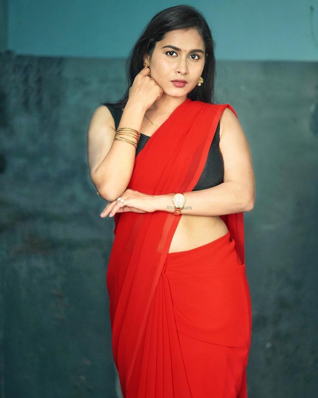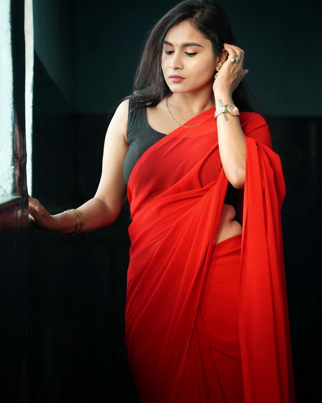 6 / 25Kanchan Bamne Alluring Poses in Red Saree
