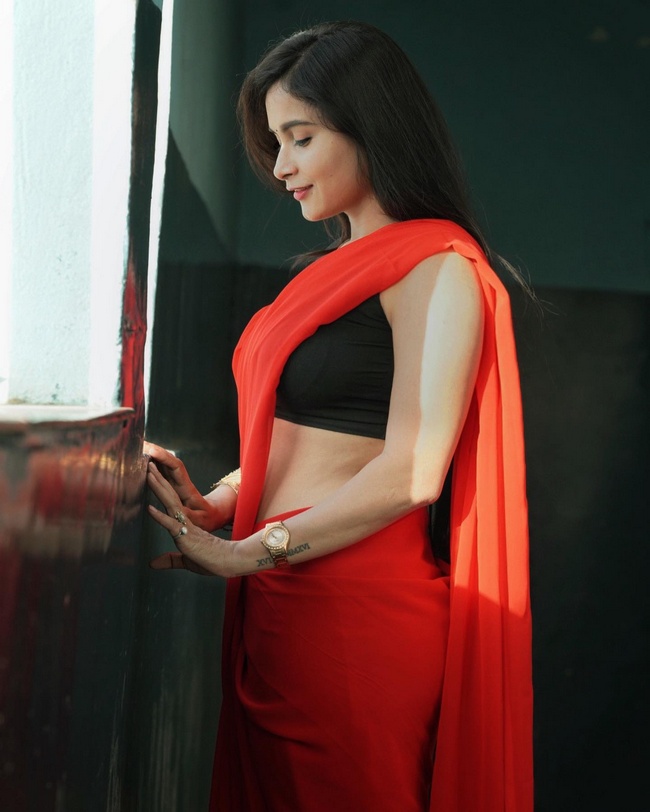 Kanchan Bamne Alluring Poses in Red Saree