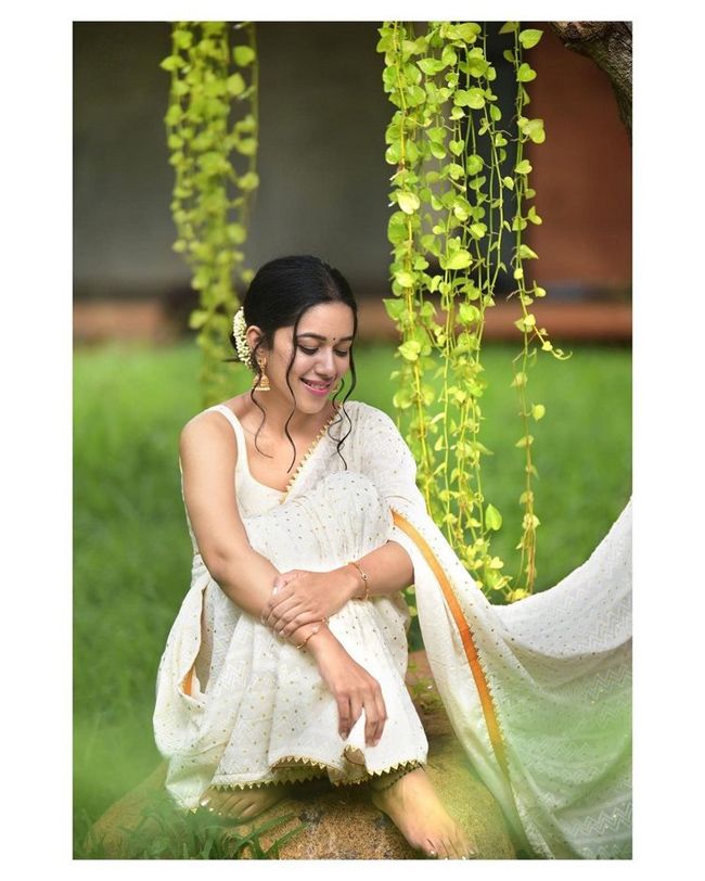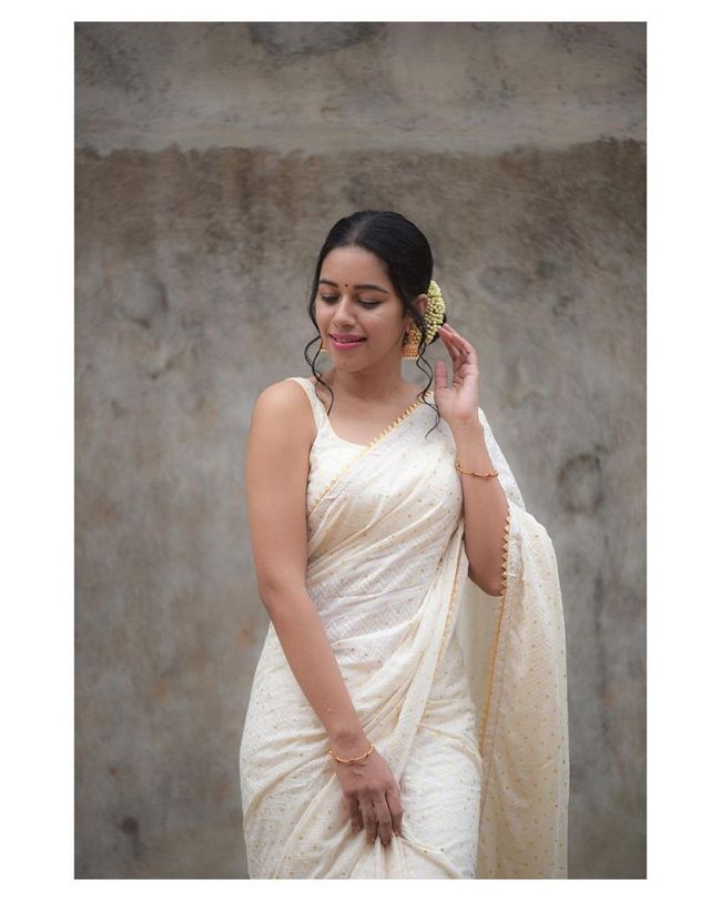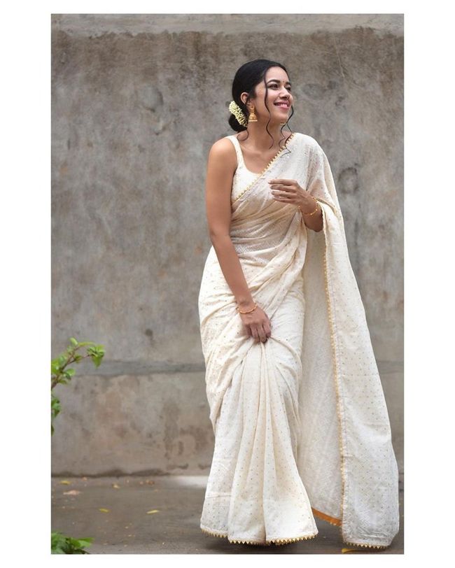 6 / 21Mirnalini Ravi Looks Beautiful In White Saree