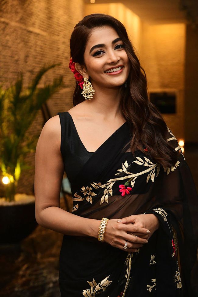 14 / 16Pooja Hegde Looks Stunning In Black Saree