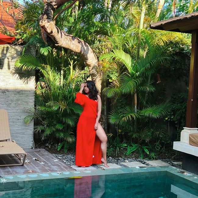 2 / 12Stellar Poses Of Catherine Tresa In Red