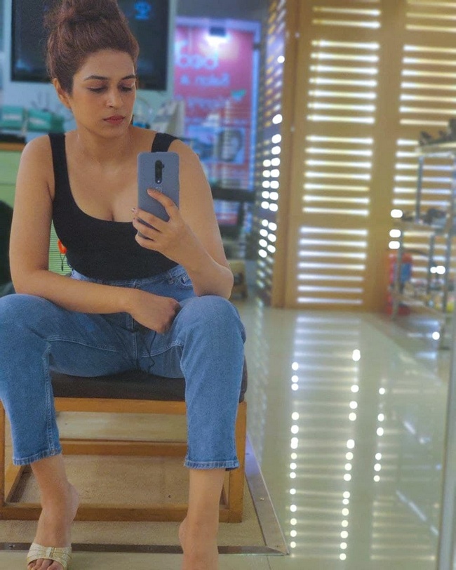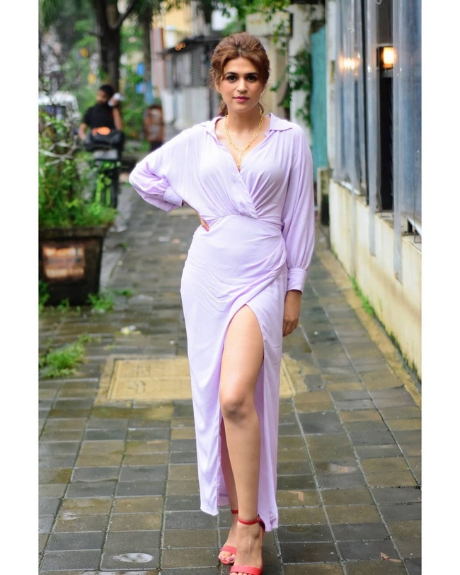 Actress Shraddha Das in thigh-high slit dress