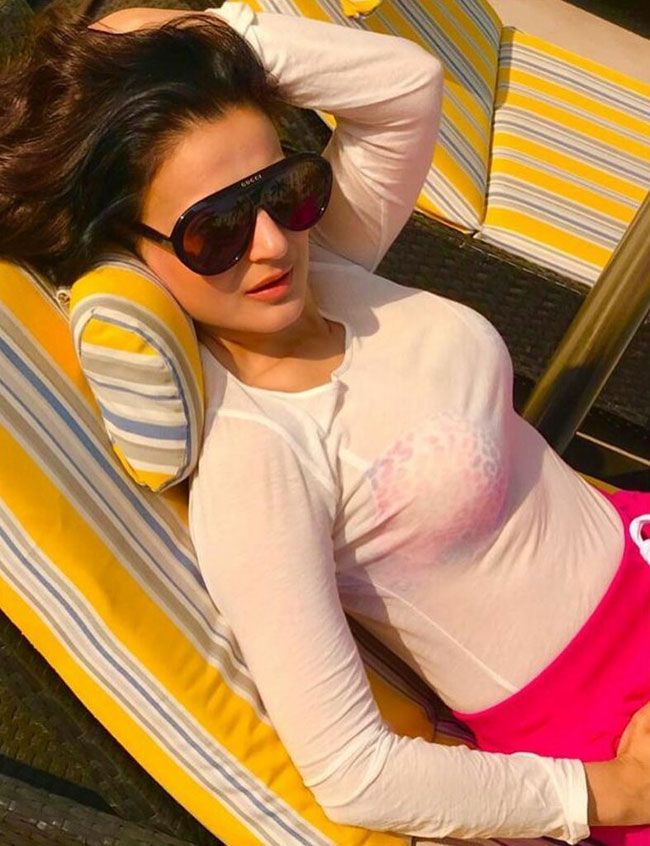 Ameesha Patel posed for photos in Swimming Pool
