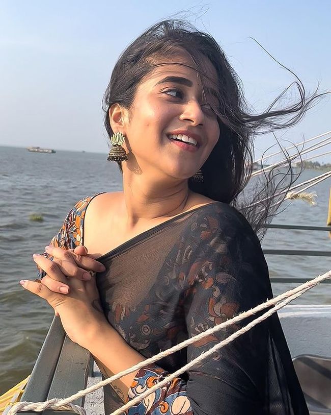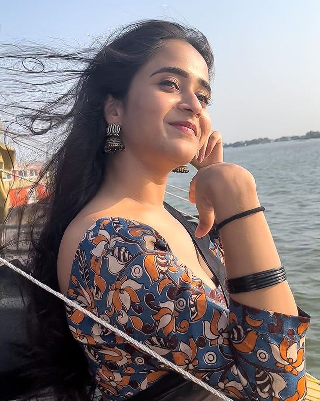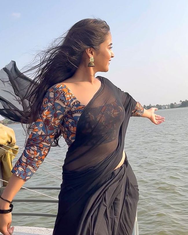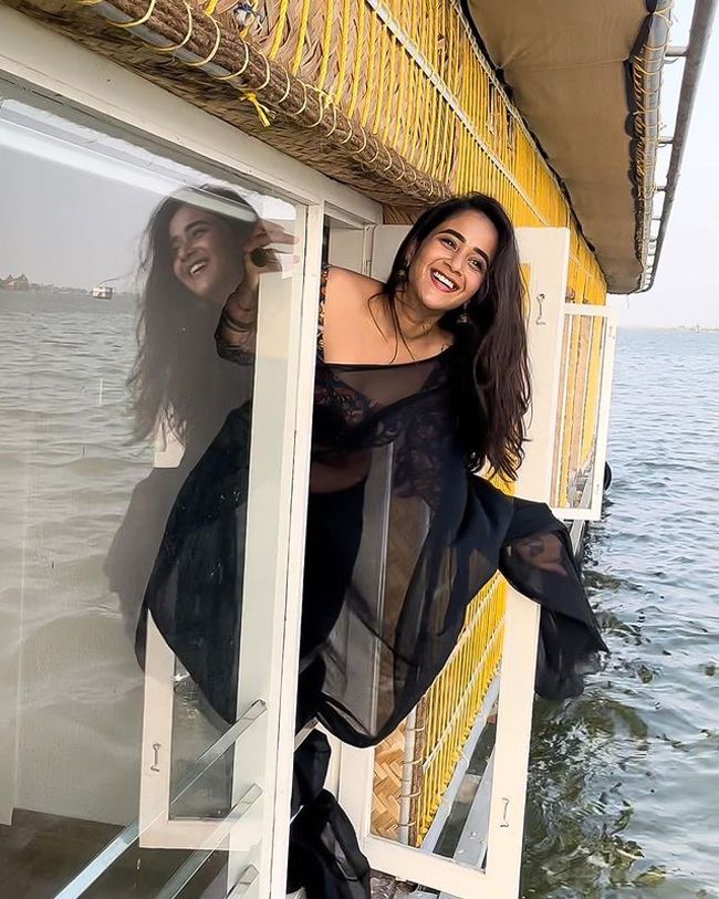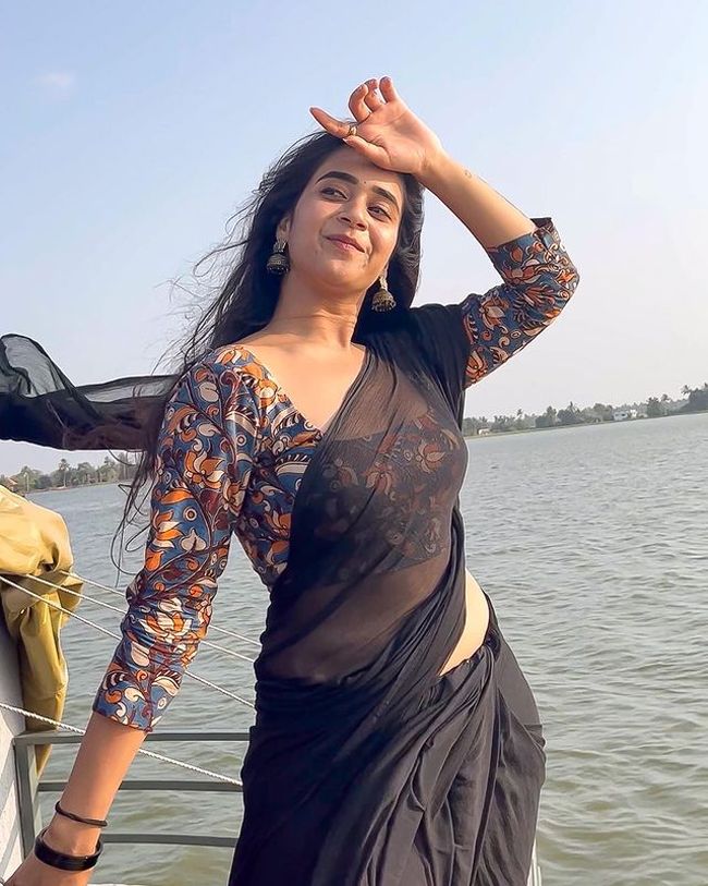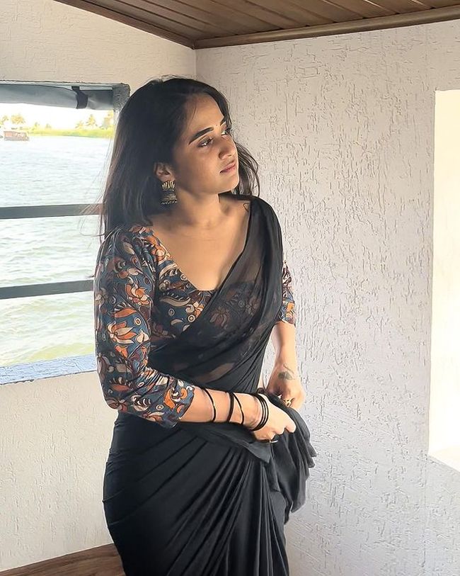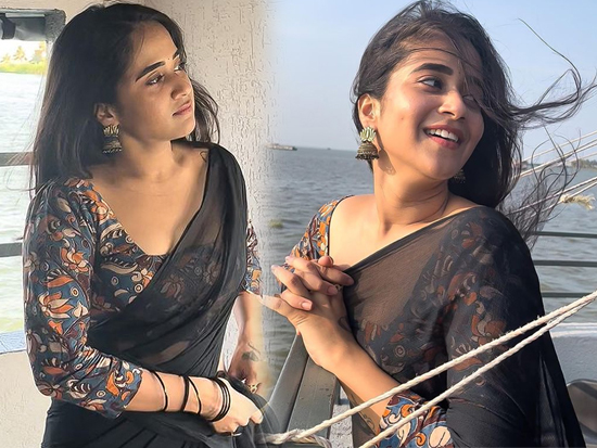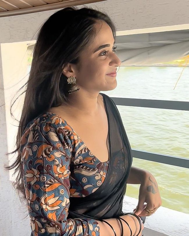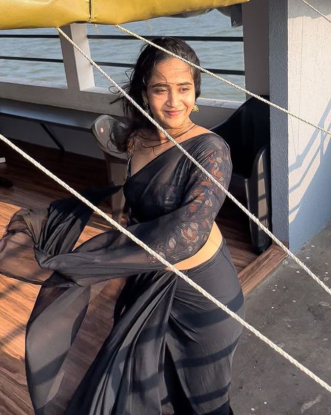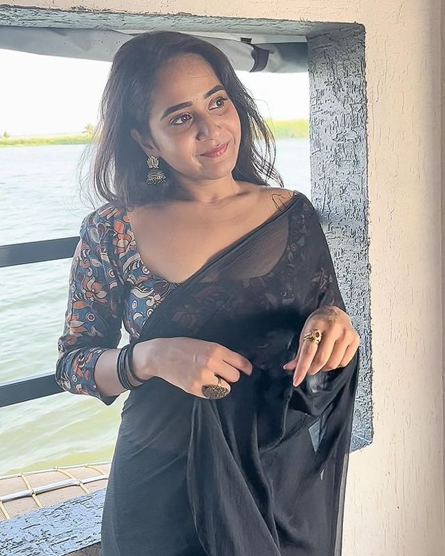 Deepthi Sunaina Mesmerising Pics In Black Saree