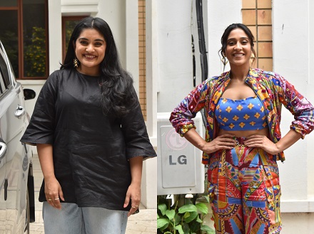 Nivetha Thomas Regina Cassandra at saakini daakini promotions in Hyderabad